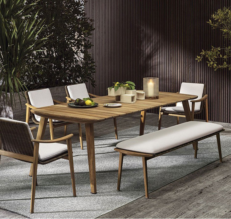 야외 테이블과 의자 빌라 안뜰 야외 방수 캐주얼 티크 테이블과 의자 정원 캐주얼 등나무 의자 호텔 테라스 의자
