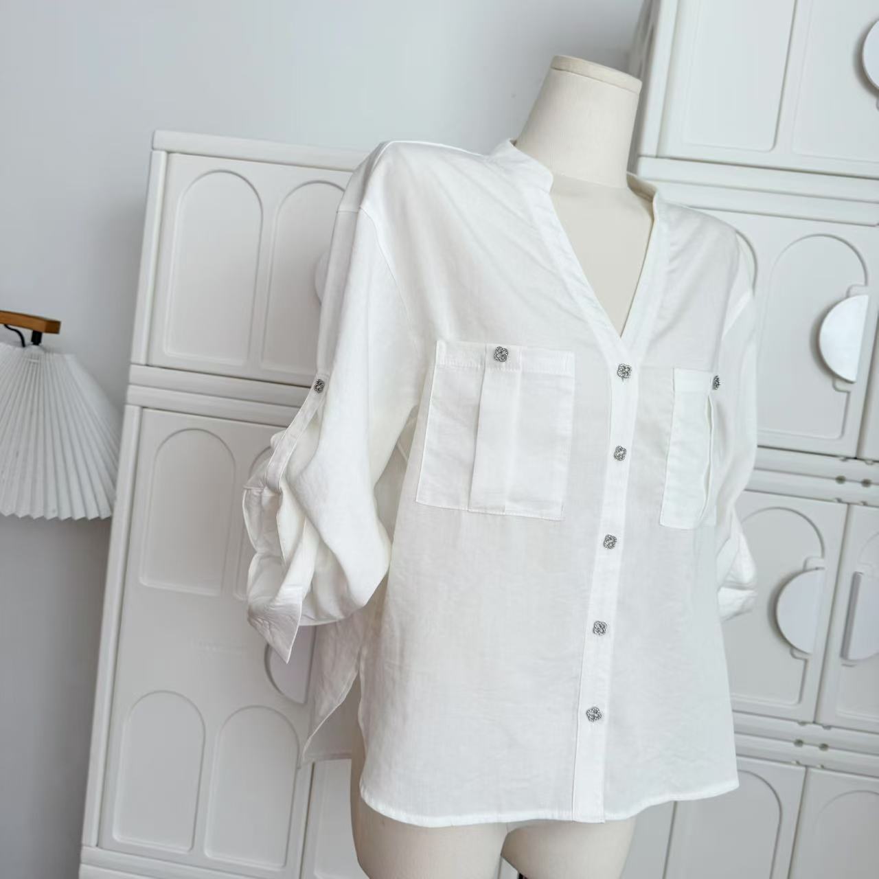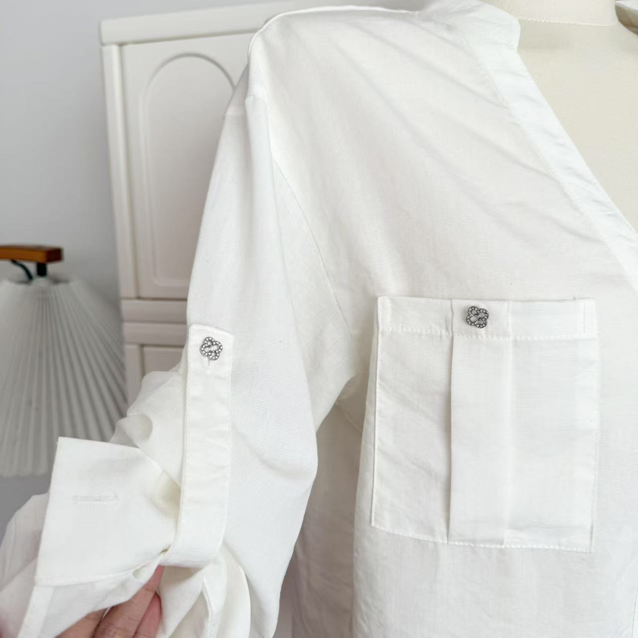 작은 자매 흰 비둘기 늙은시 흰 셔츠 여성의 봄 모방 린넨 명확하고 명확한 캐주얼 느슨한 선 스크린 탑
