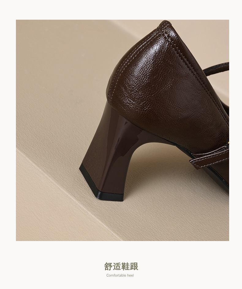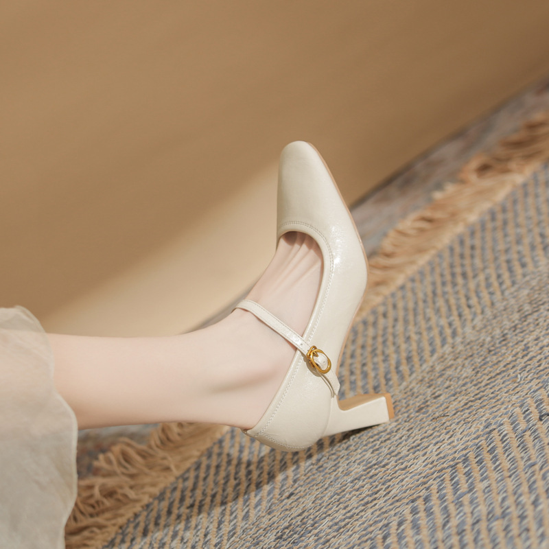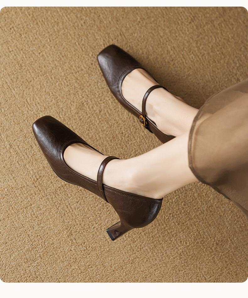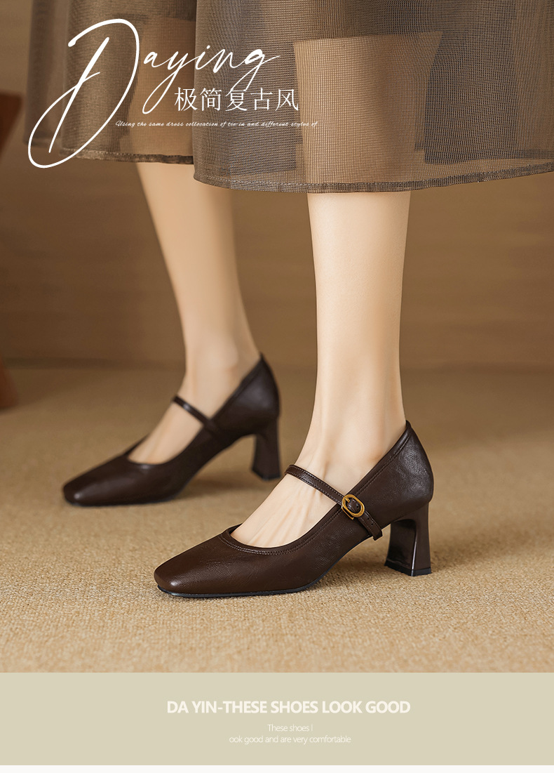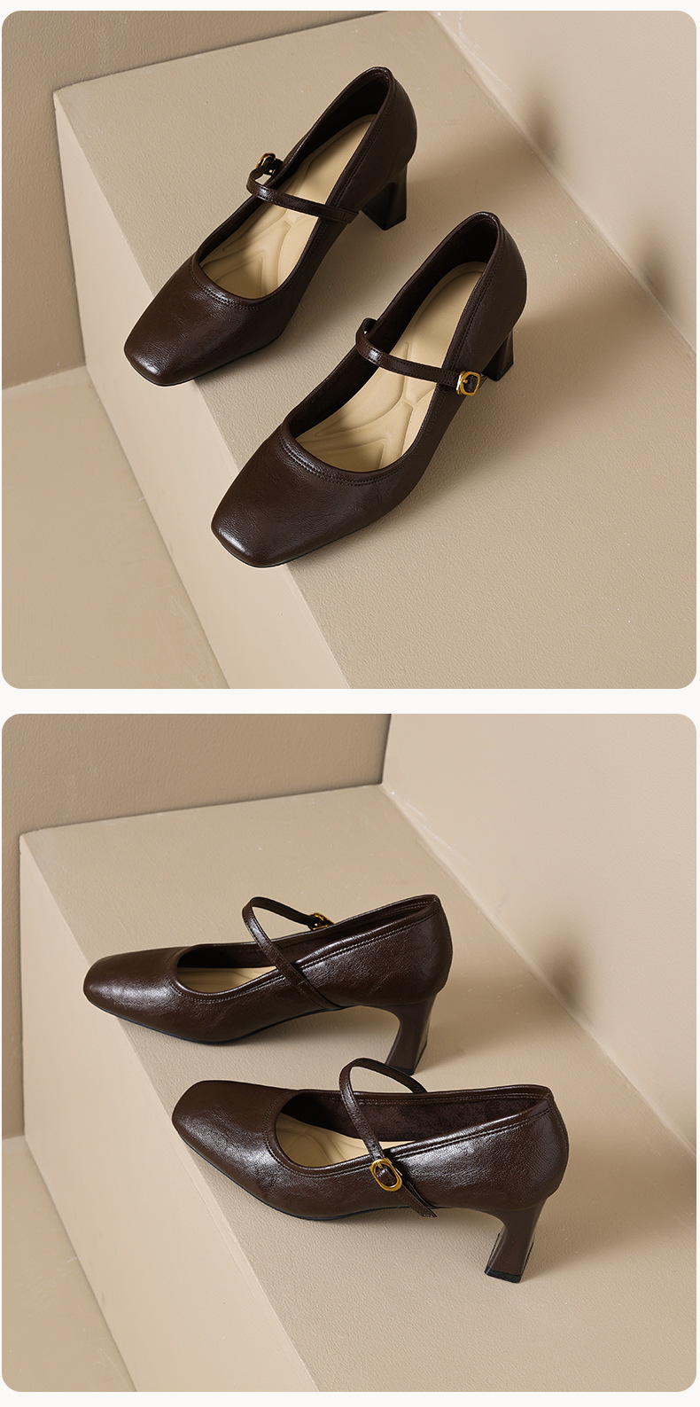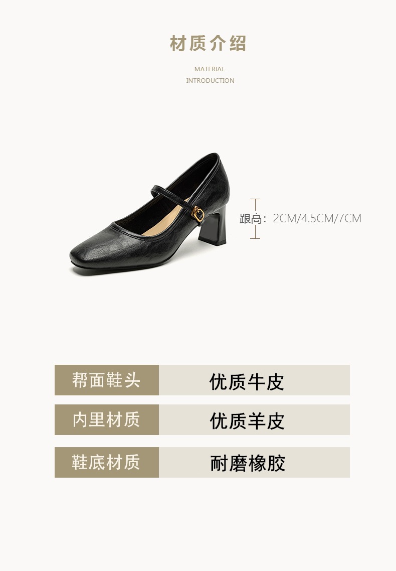 양가죽 ~ 프랑스 복고풍 블랙 하이힐 2025 봄 한 단어 통근 작업 두꺼운 힐 메리 제인 신발