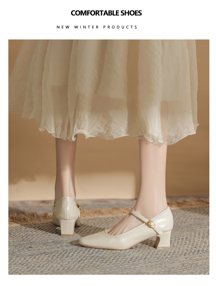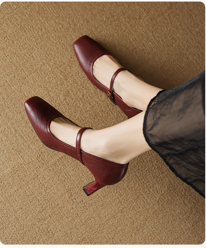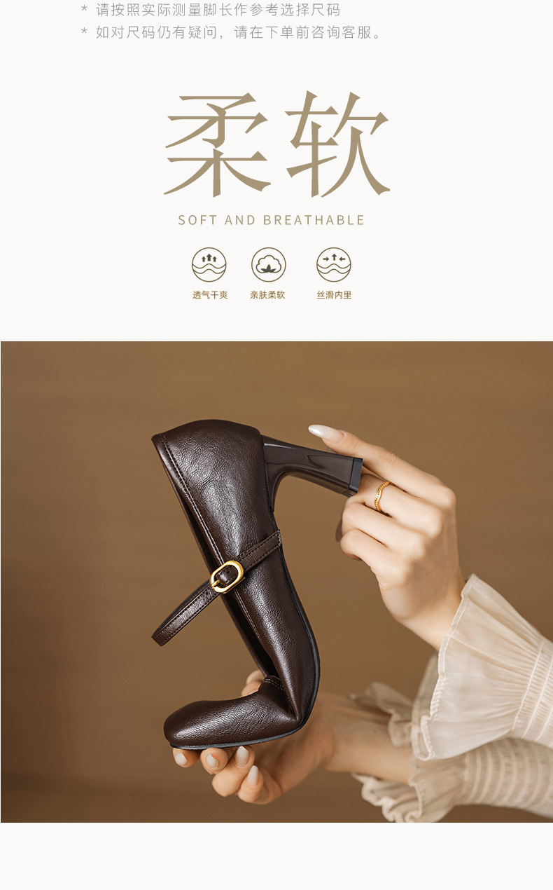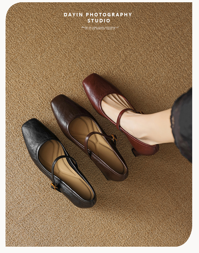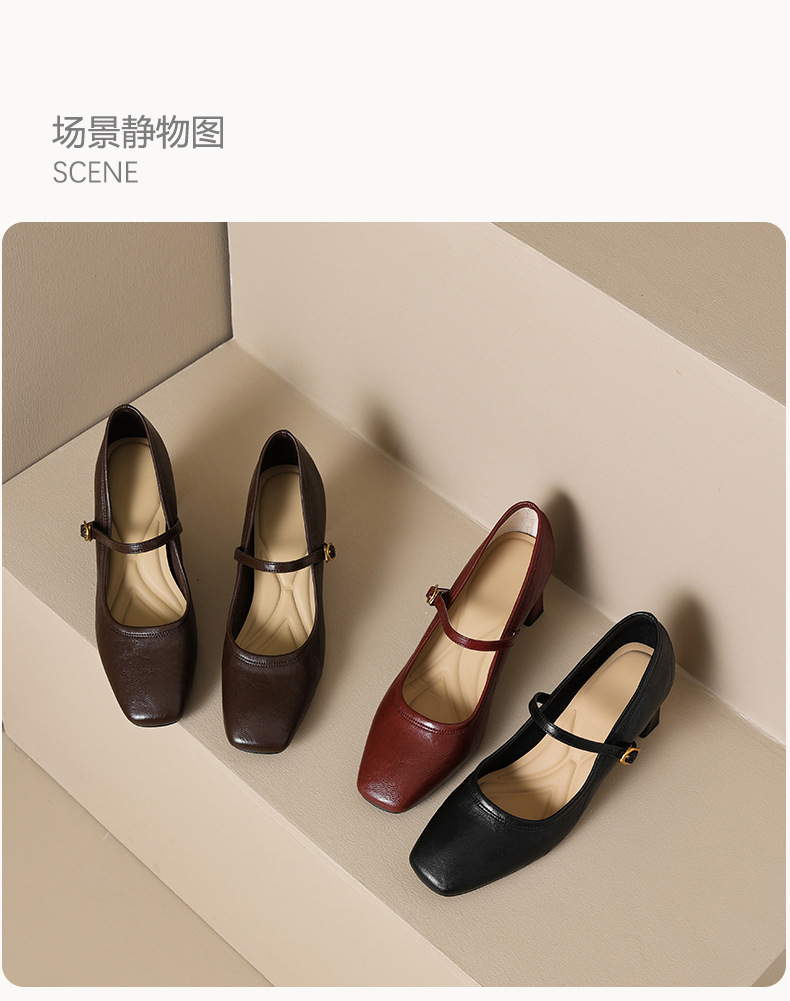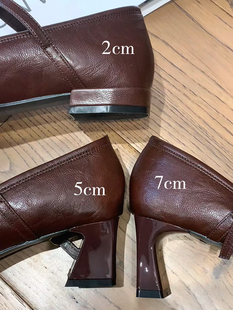 양가죽 ~ 프랑스 복고풍 블랙 하이힐 2025 봄 한 단어 통근 작업 두꺼운 힐 메리 제인 신발