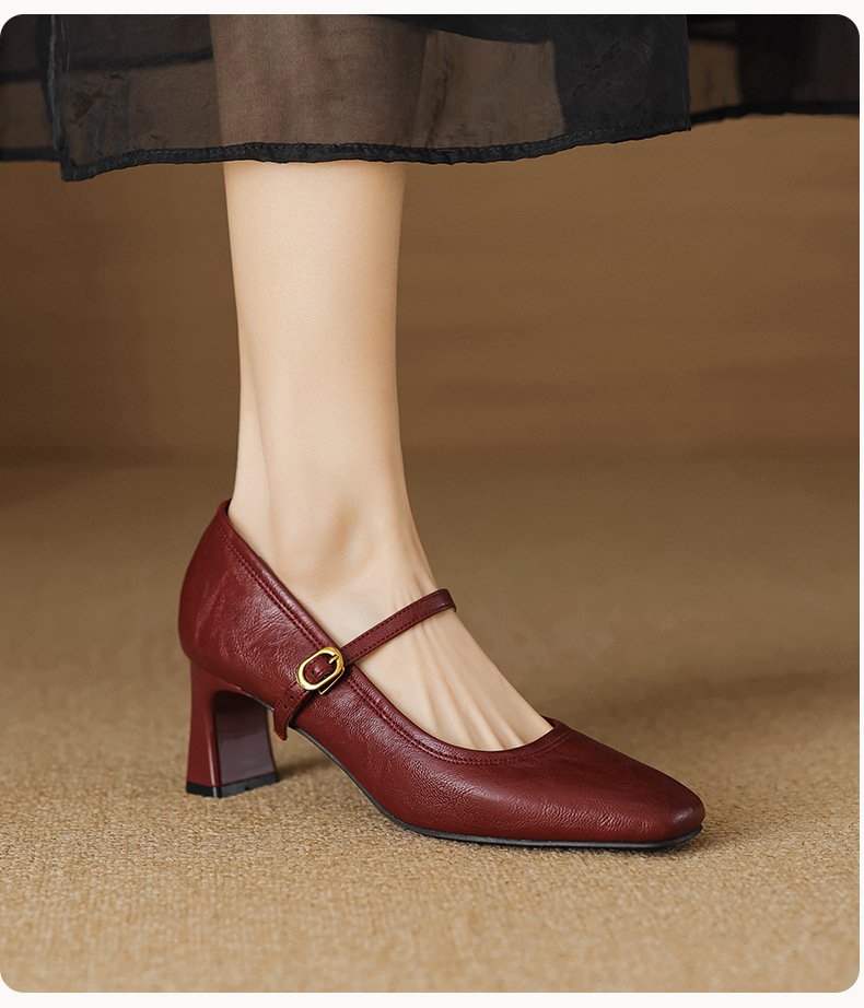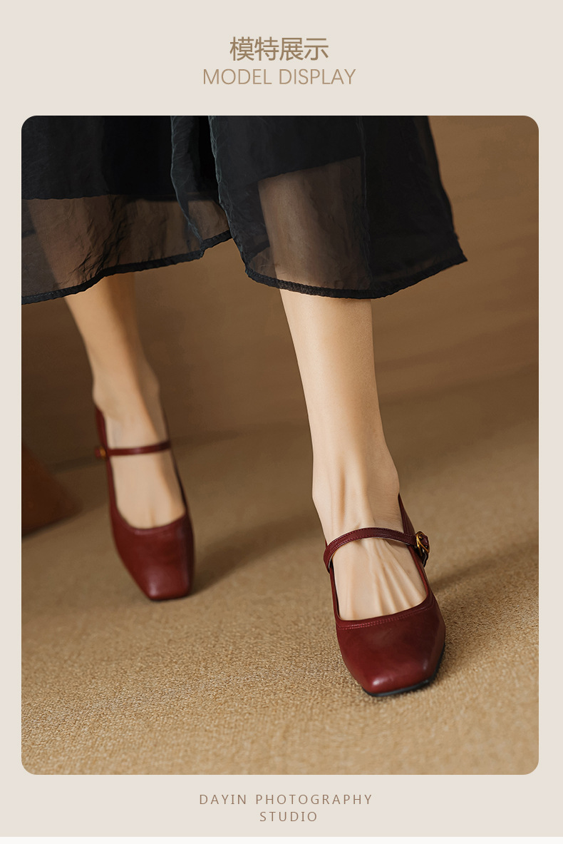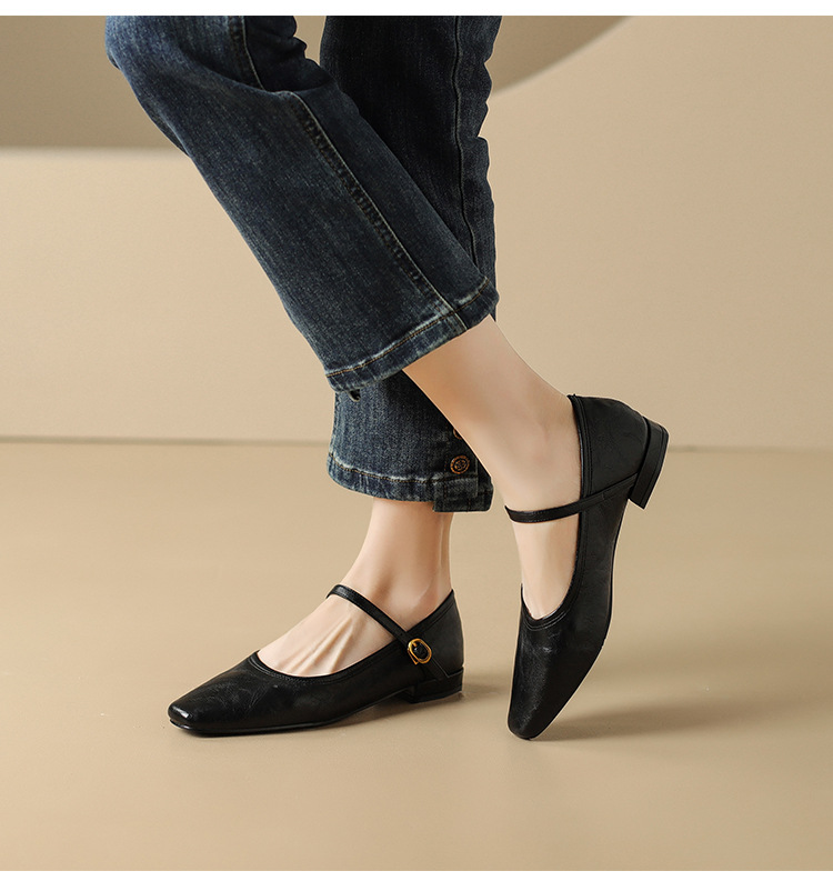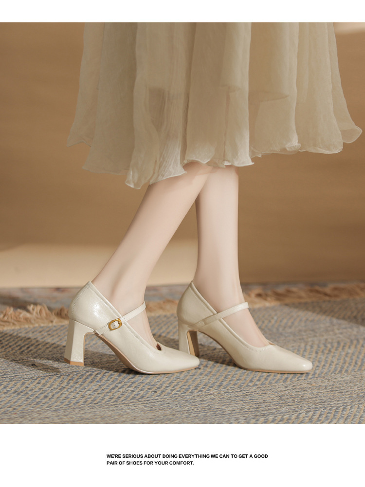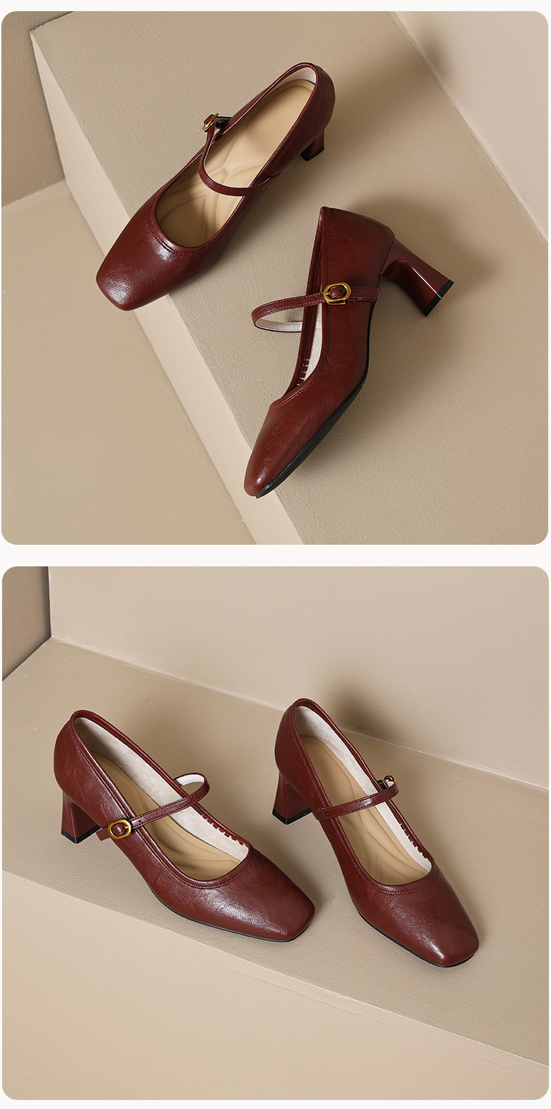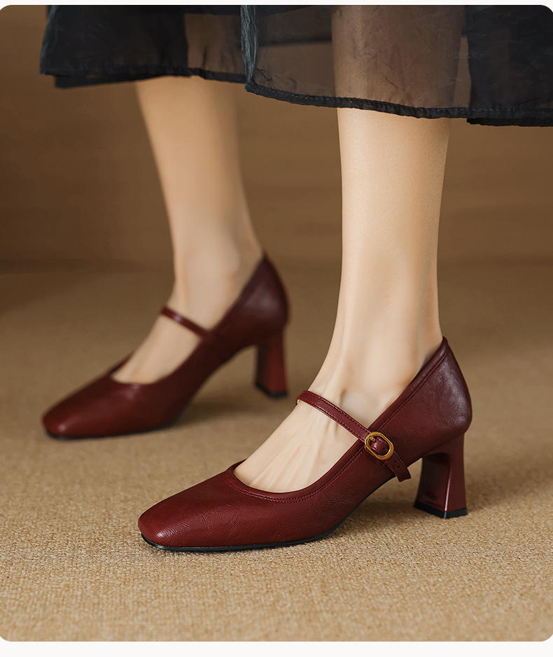 양가죽 ~ 프랑스 복고풍 블랙 하이힐 2025 봄 한 단어 통근 작업 두꺼운 힐 메리 제인 신발