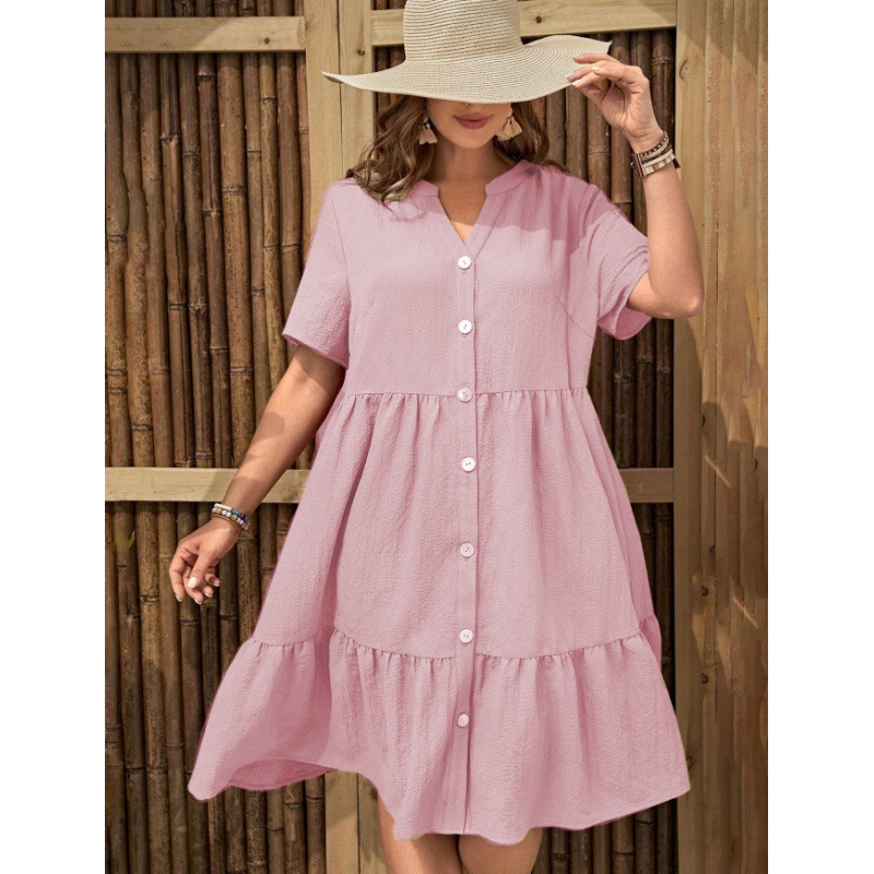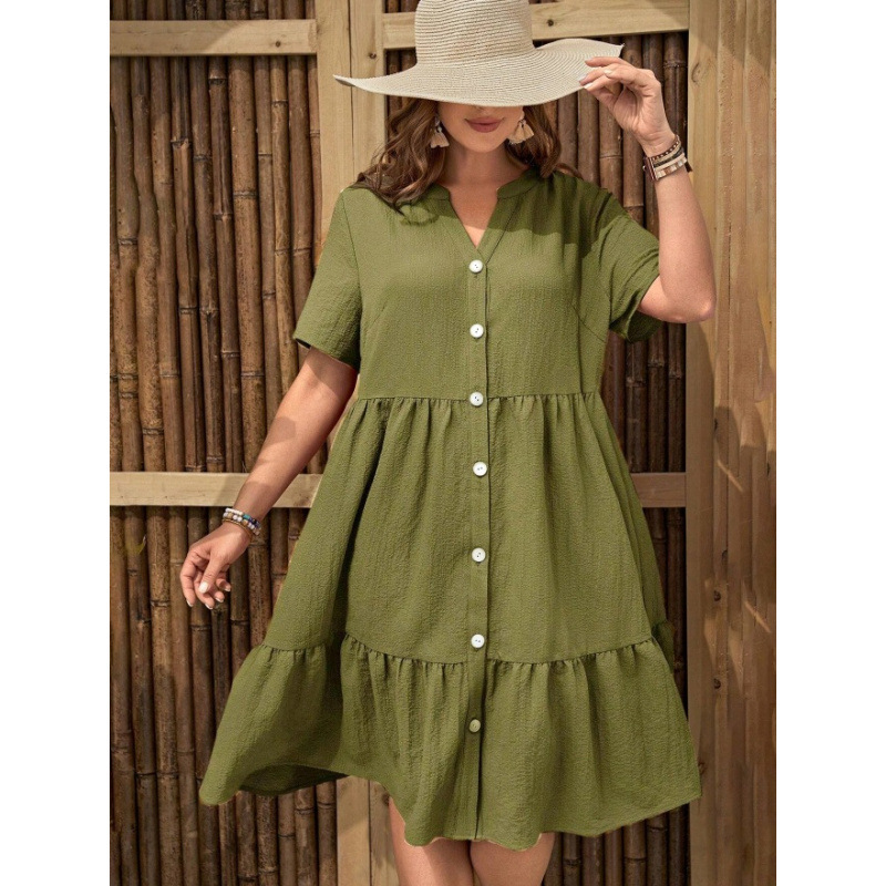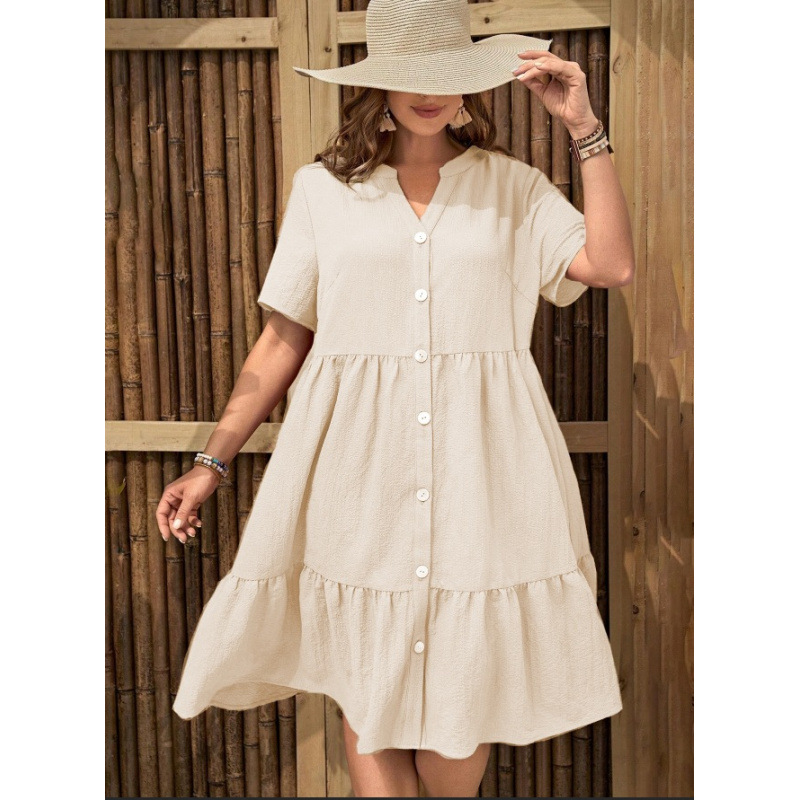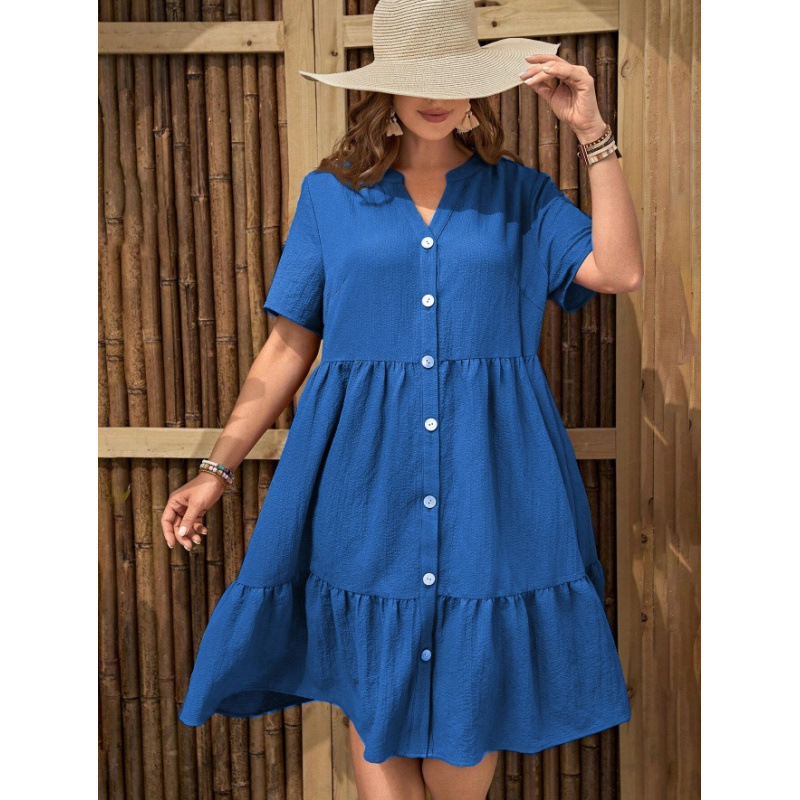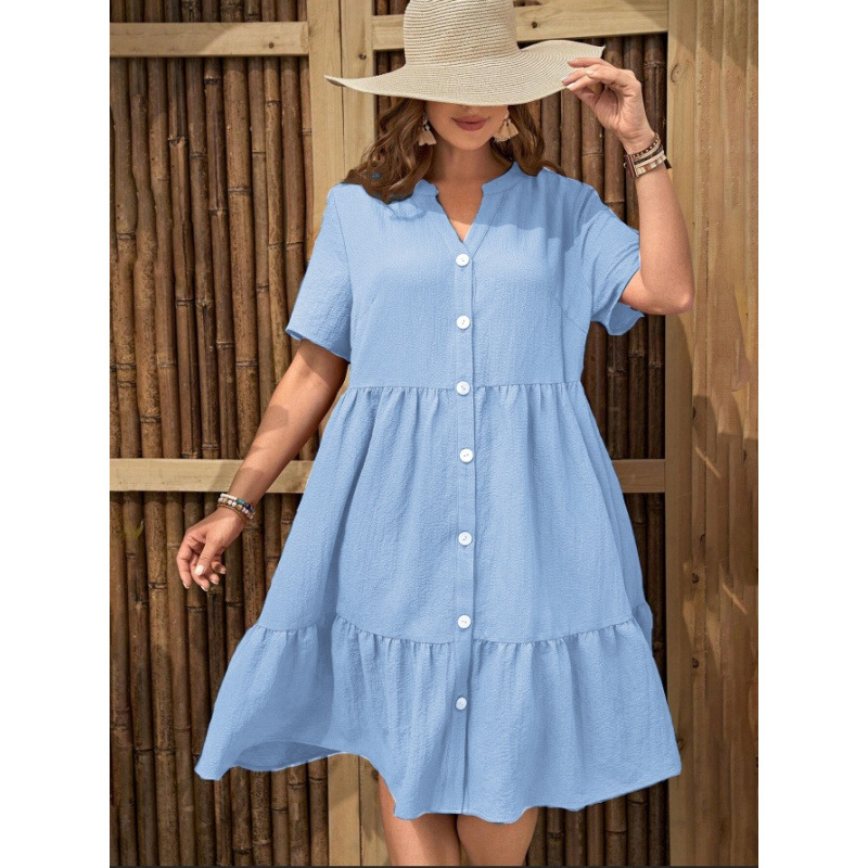 아마존 폭발 국경 간 대외 무역 셔츠 원피스 2025 새로운 여름 유럽과 미국 여성의 긴 버튼 원피스스토어 가기
