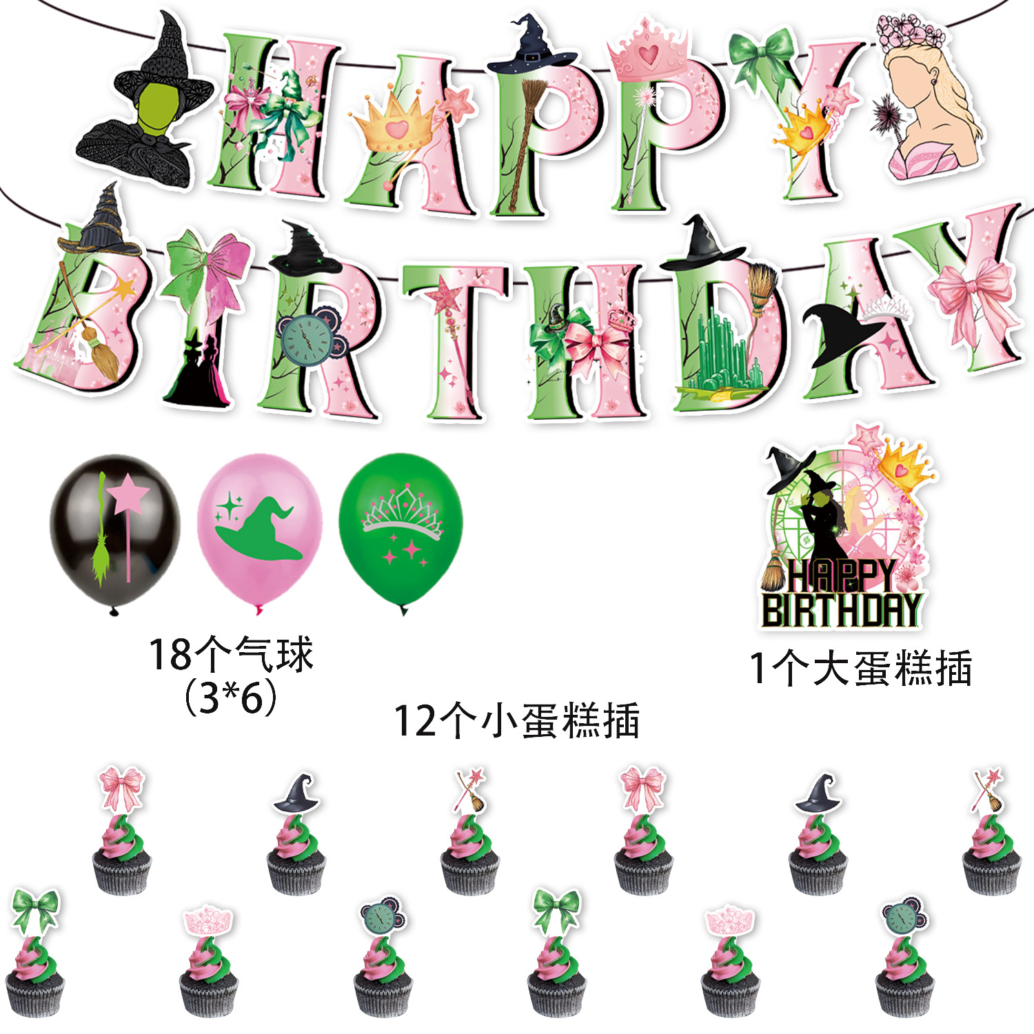 마법의 나쁜 마녀 휴일 생일 장면 장식 파티 장식 용품 배너 풍선 깃발 세트