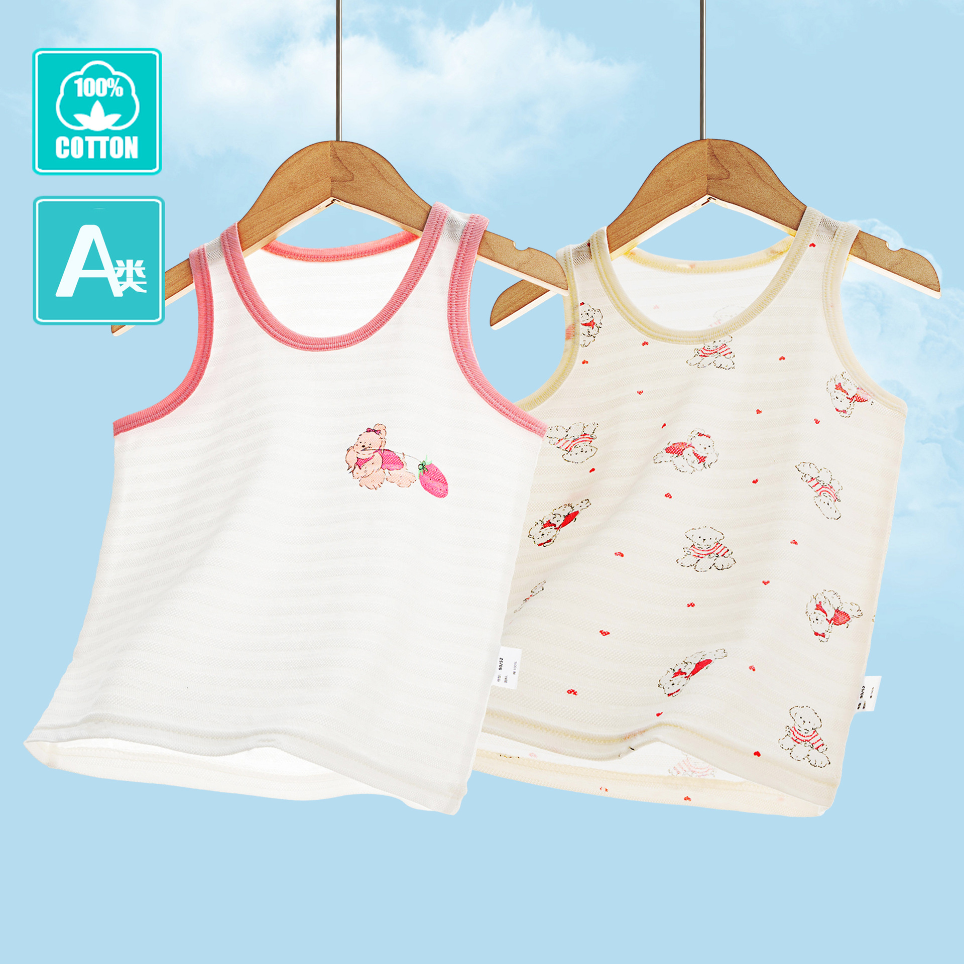 2피스 세트 호흡 가능한 면 소재 아동용 조끼 가을 여아용 일본 스타일 얇은 이너웨어 통기성 A급 레이서넥 탑스토어 가기