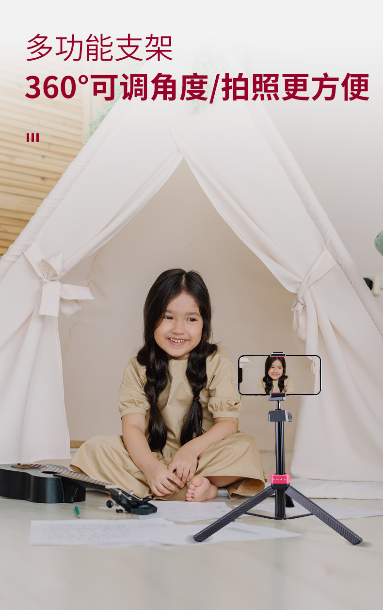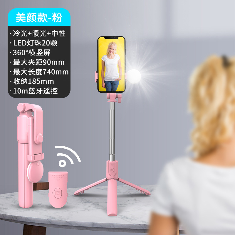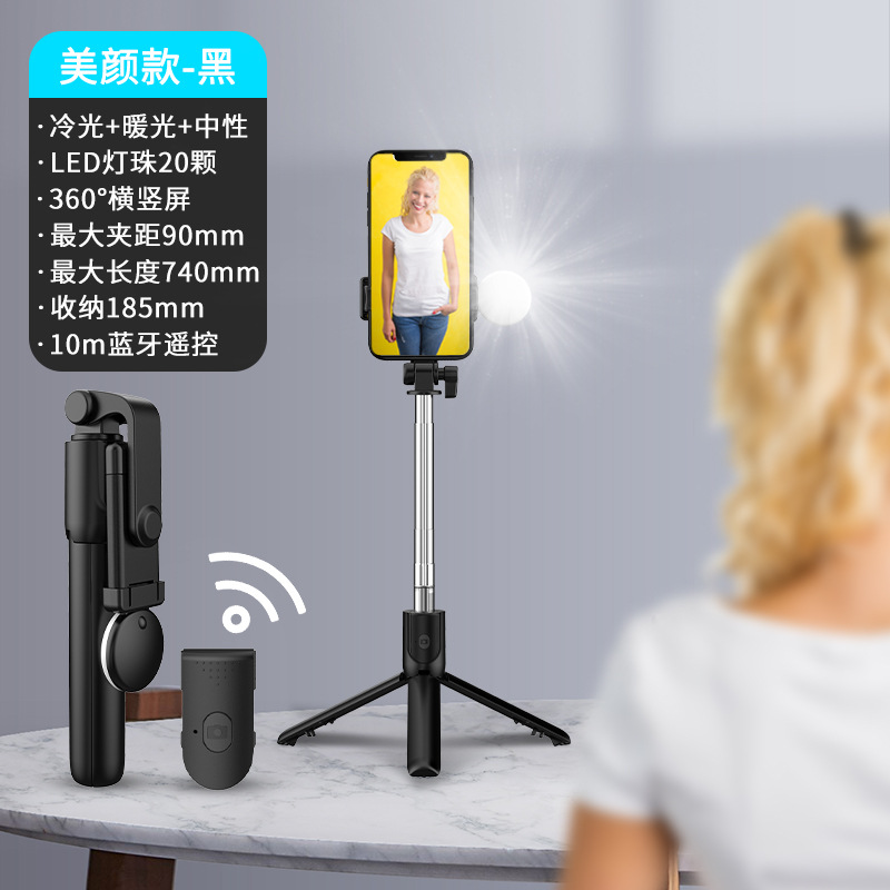 휴대폰 셀카봉, 블루투스 내장, 뷰티 라이트, 리모컨, 다기능, 라이브 방송, 데스크탑, 세 가지 방식으로 촬영 가능