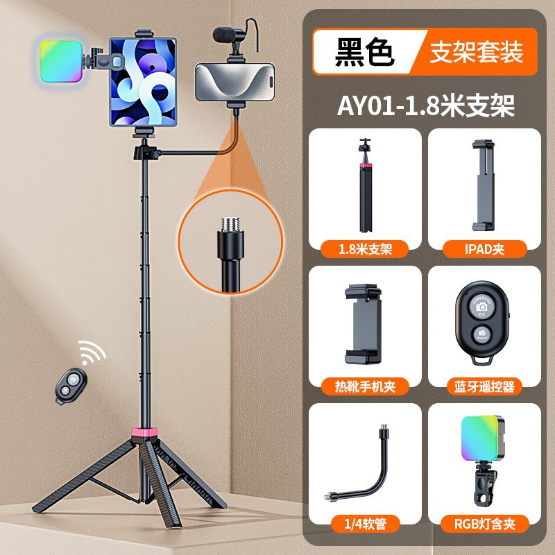 • AY01S-1.8m 사진 스탠드 블랙(표준 + ipad 클립 + 호스 + Bluetooth + 클립 포함 RGB 조명)