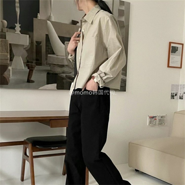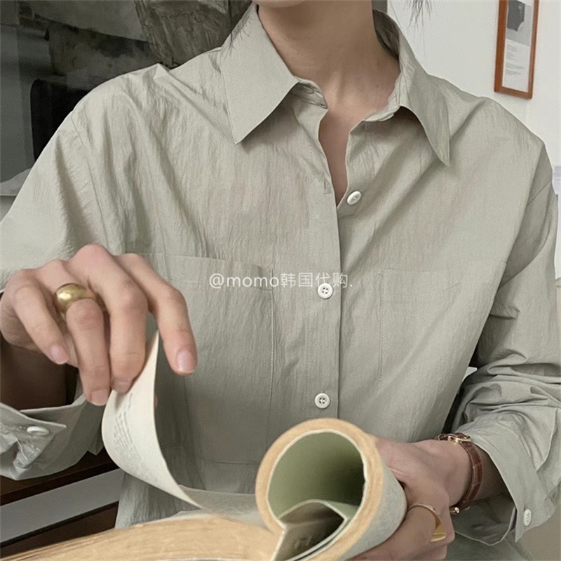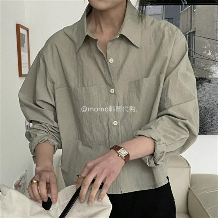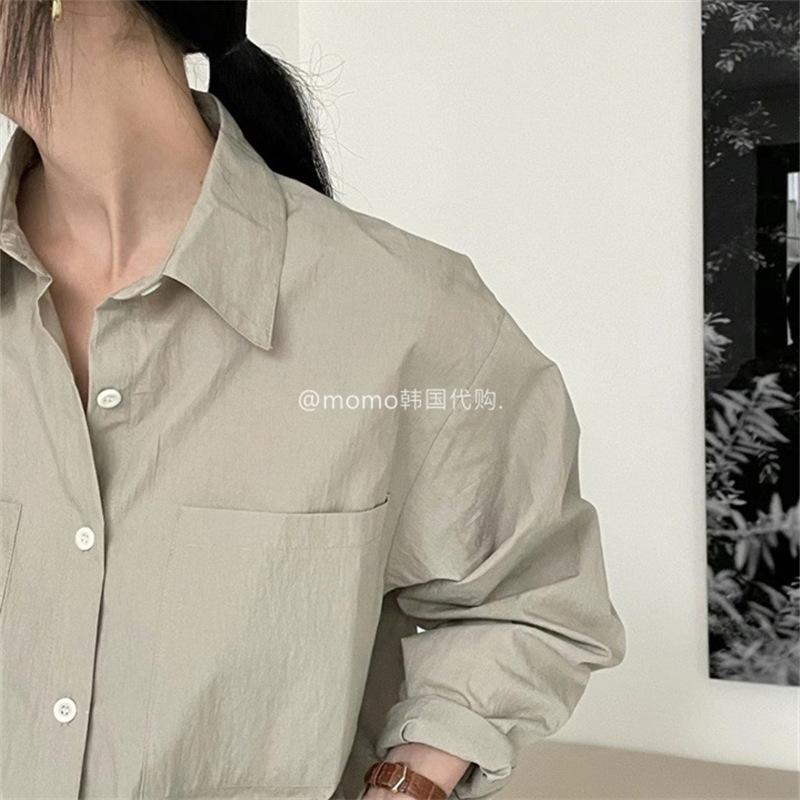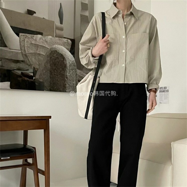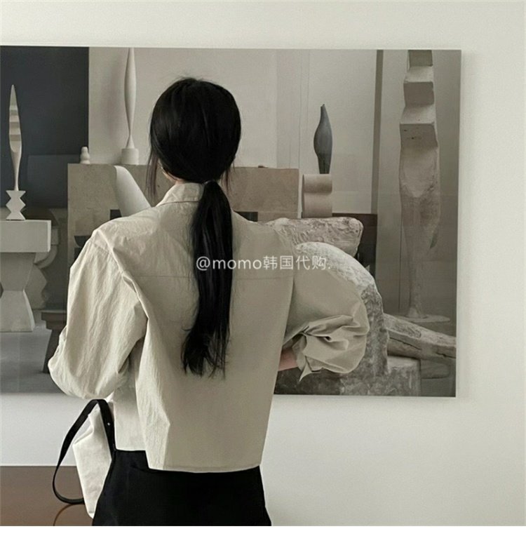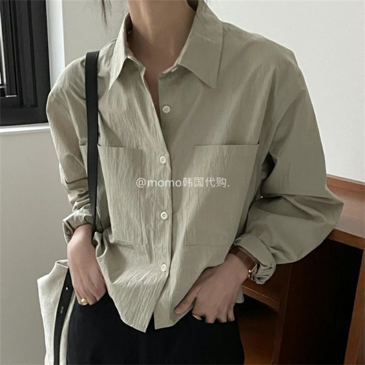2024 봄 새 옷깃 긴 소매 통근 솔리드 컬러 셔츠 최고 여성의 짧은 더블 포켓 코튼 셔츠 재킷스토어 가기