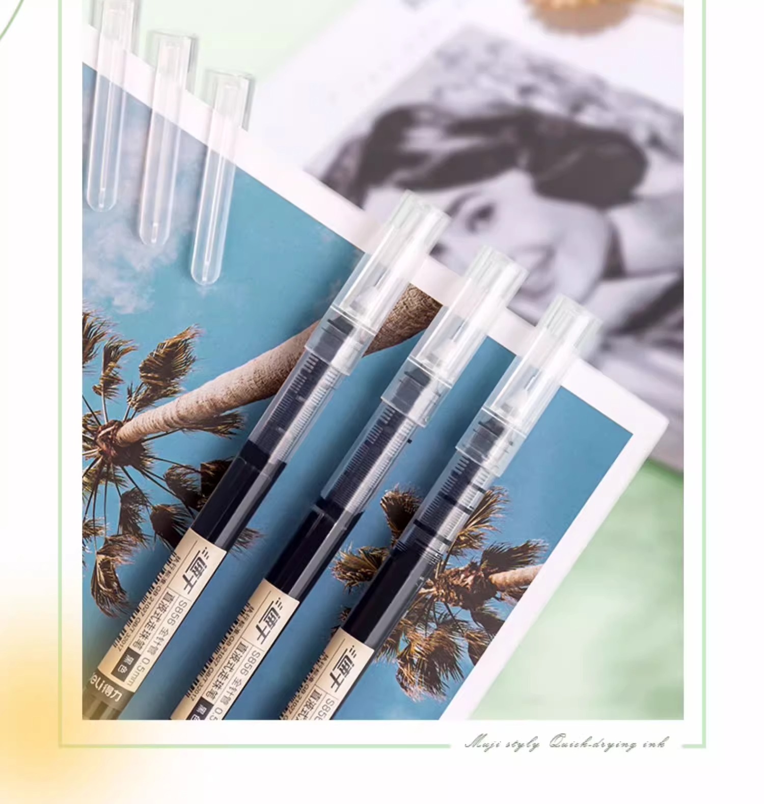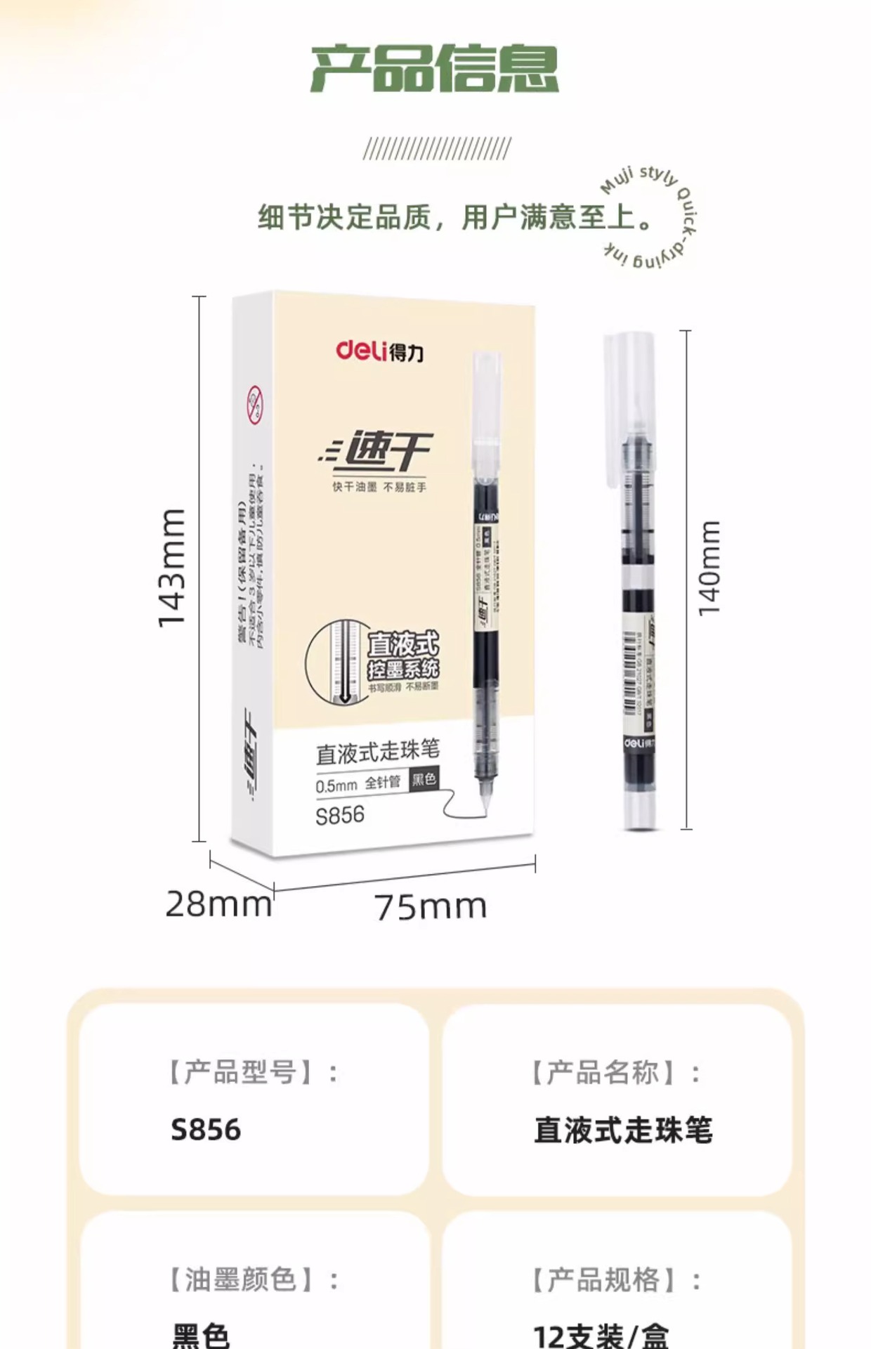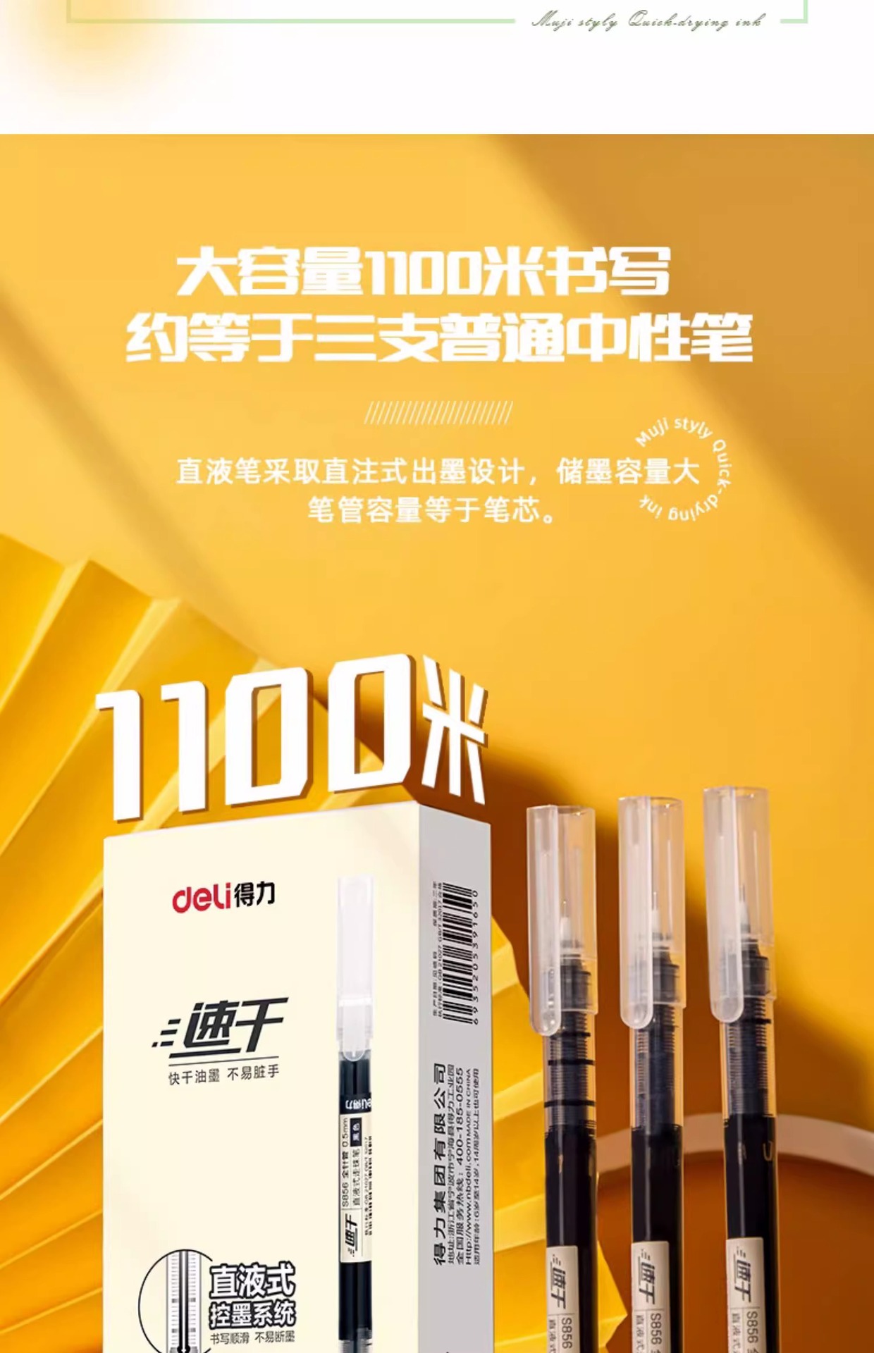 델리 S856 직접 액체 볼 펜 블랙 0.5mm 빠른 건조 젤 펜 서명 펜 물 기반 직접 액체 펜