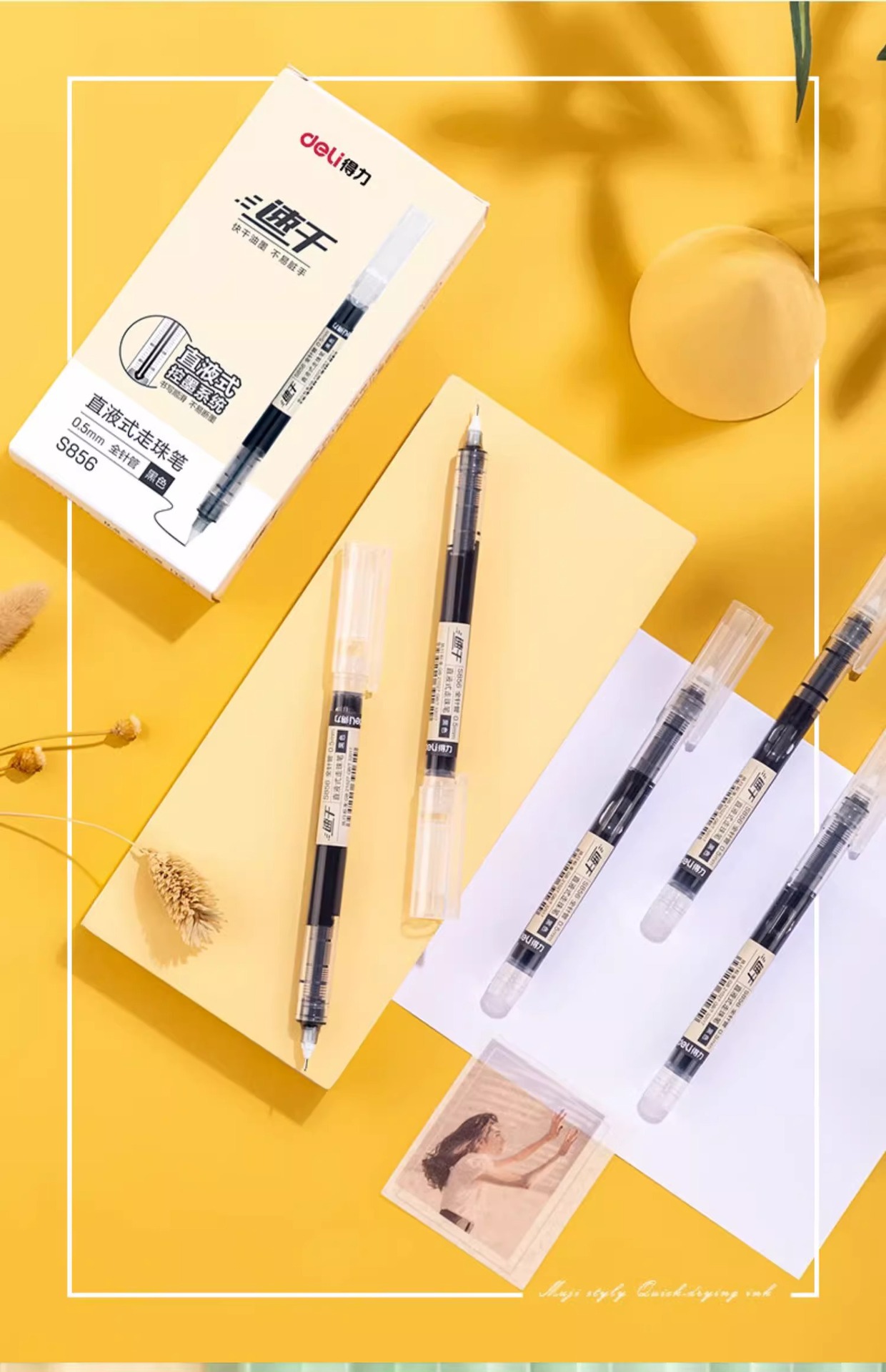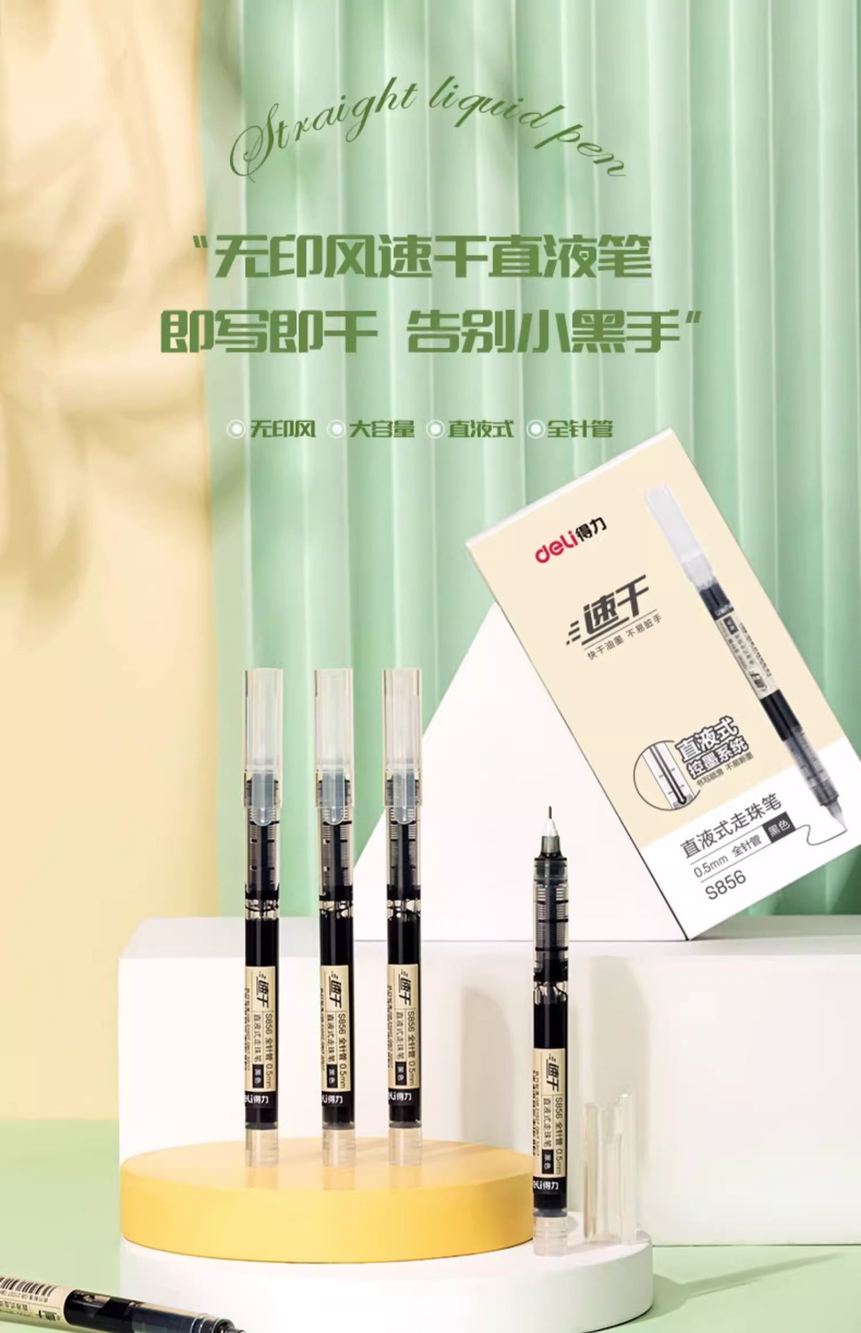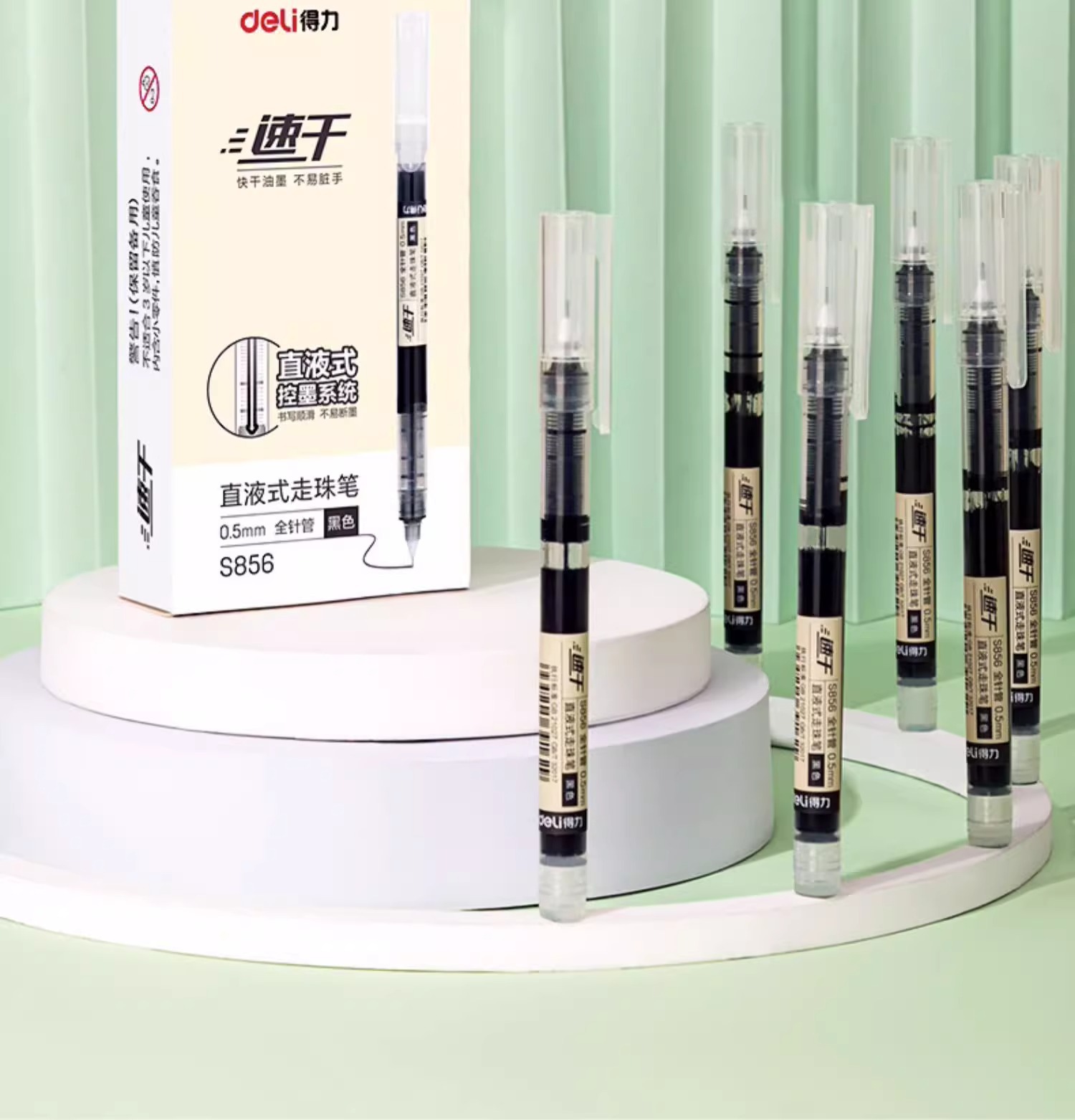 델리 S856 직접 액체 볼 펜 블랙 0.5mm 빠른 건조 젤 펜 서명 펜 물 기반 직접 액체 펜스토어 가기