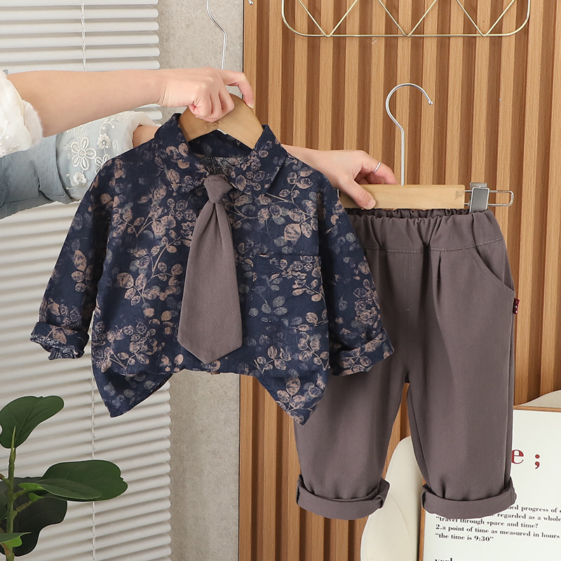 소년 봄 가을 세트 어린이 의류 2025 셔츠 봄 새 아기 긴 소매 레트로 셔츠 투피스 세트스토어 가기