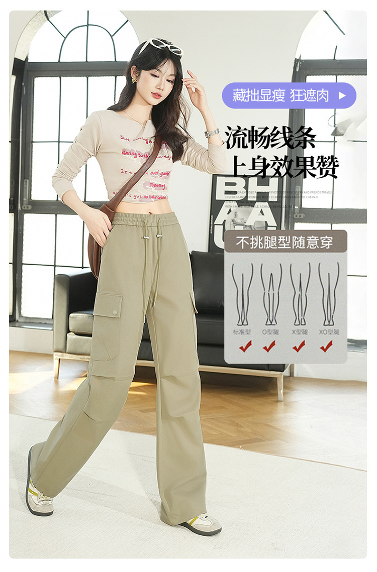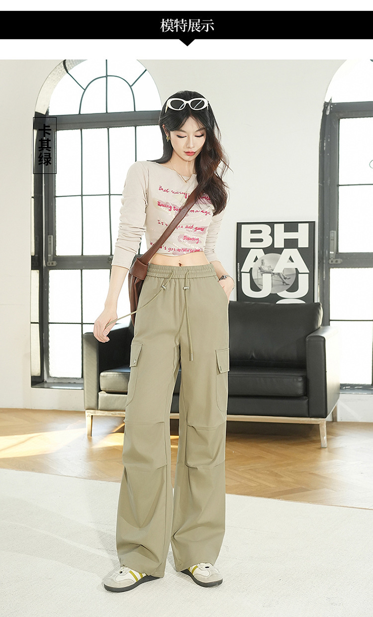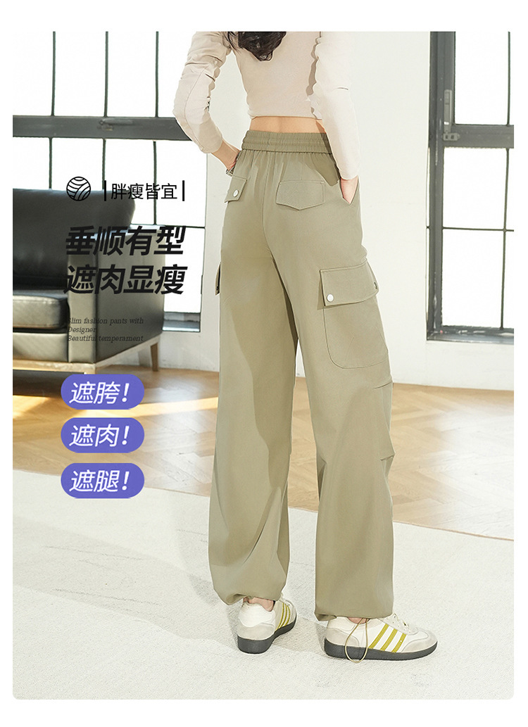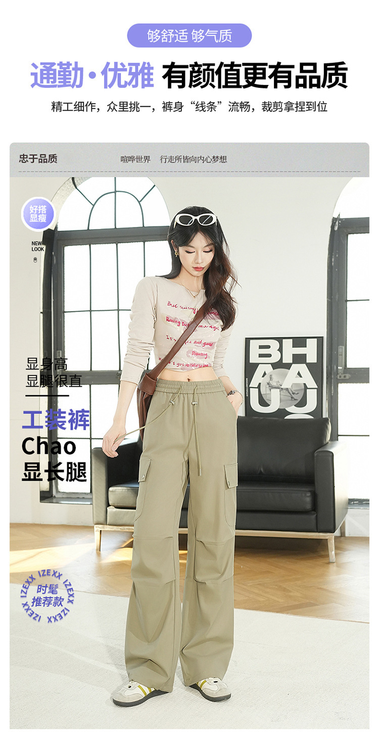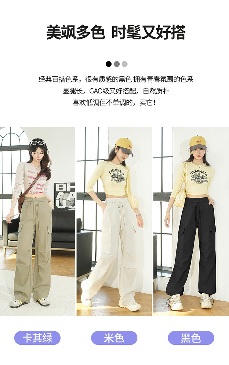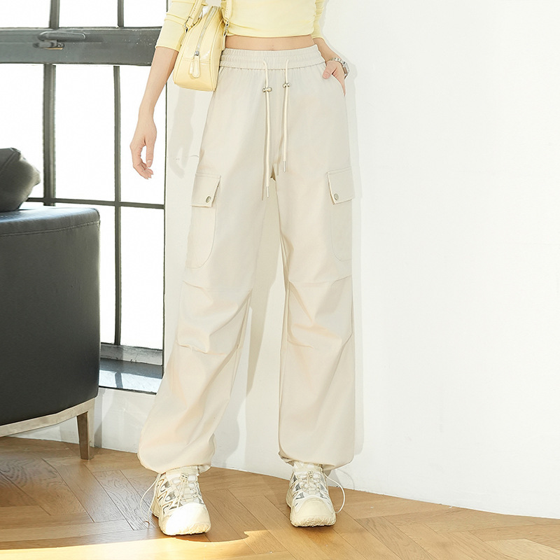 화이트 바지 여성 탄성 허리 미국 캐주얼 바지 2025 봄 새로운 하이킹 바지 느슨한 발가락 넓은 다리 바지스토어 가기