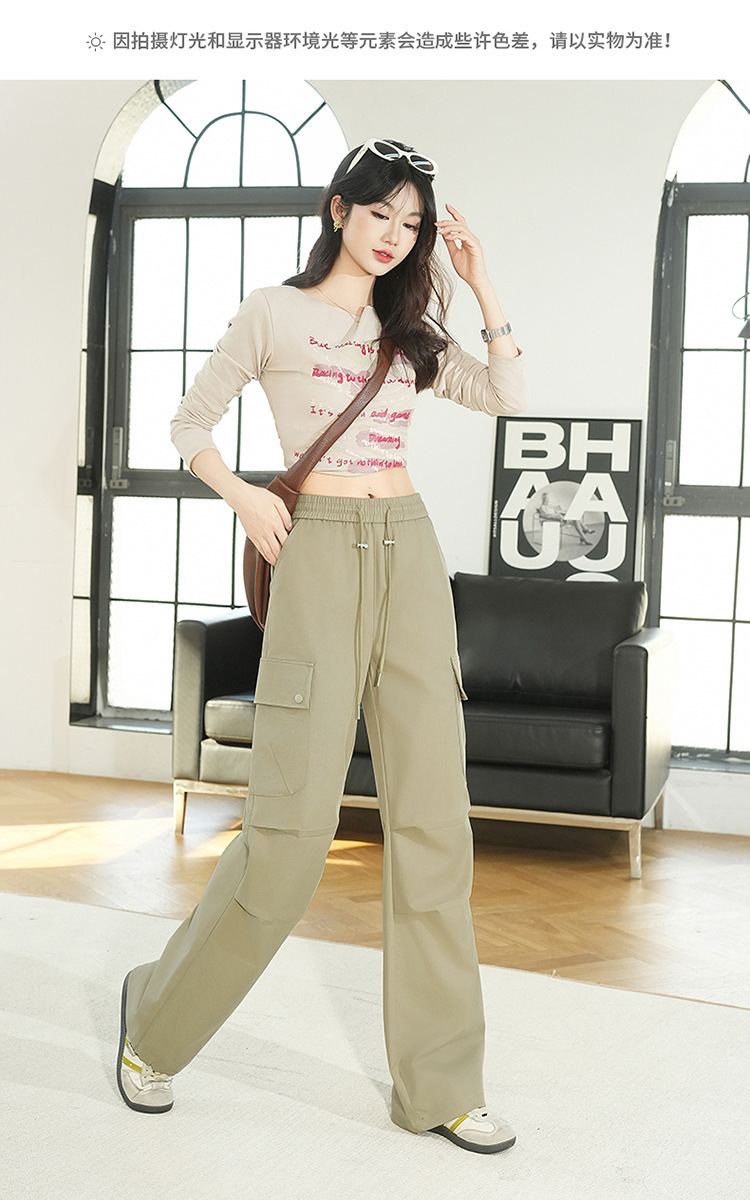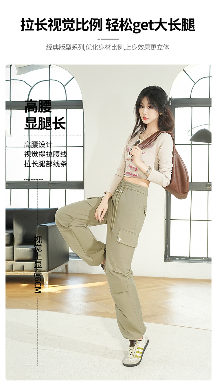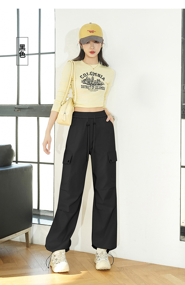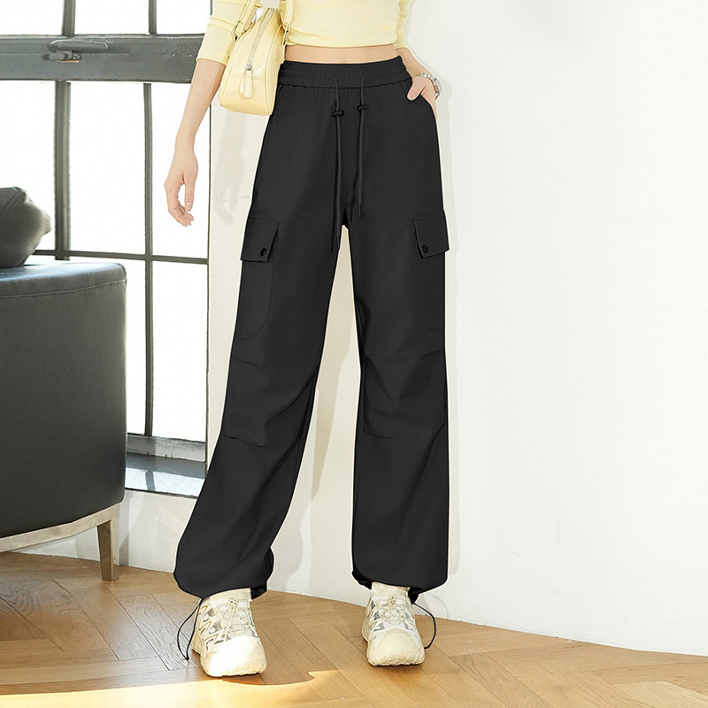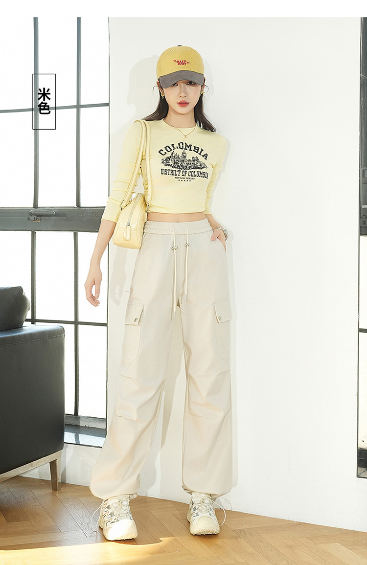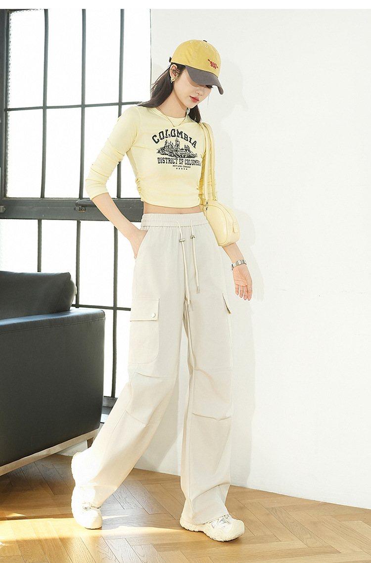 화이트 바지 여성 탄성 허리 미국 캐주얼 바지 2025 봄 새로운 하이킹 바지 느슨한 발가락 넓은 다리 바지스토어 가기