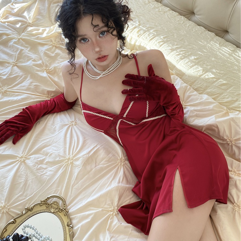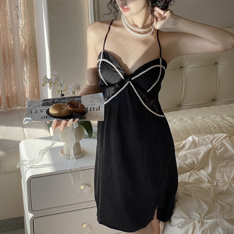 섹시한 잠옷 여성의 여름 아이스 실크 슬링 나이트 드레스 레이스 다시 섹시한 유혹 시뮬레이션 실크 홈 의류 크로스 테두리스토어 가기