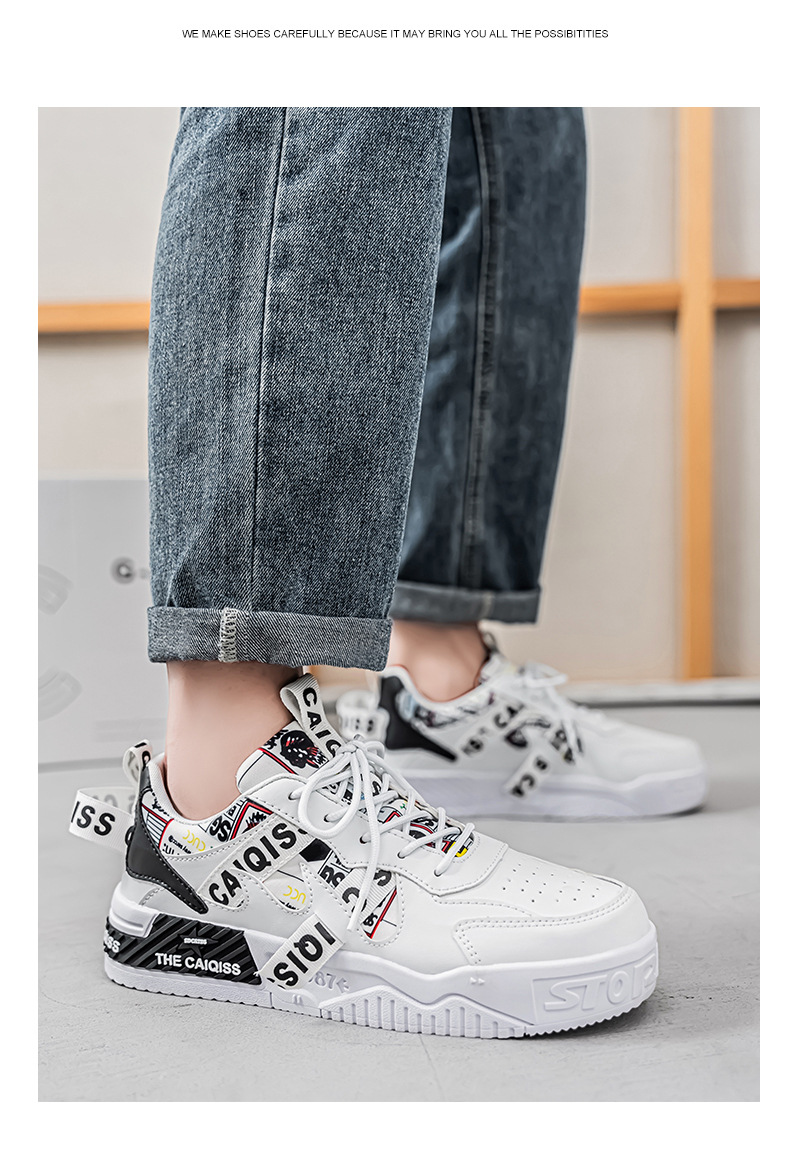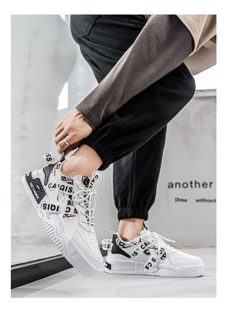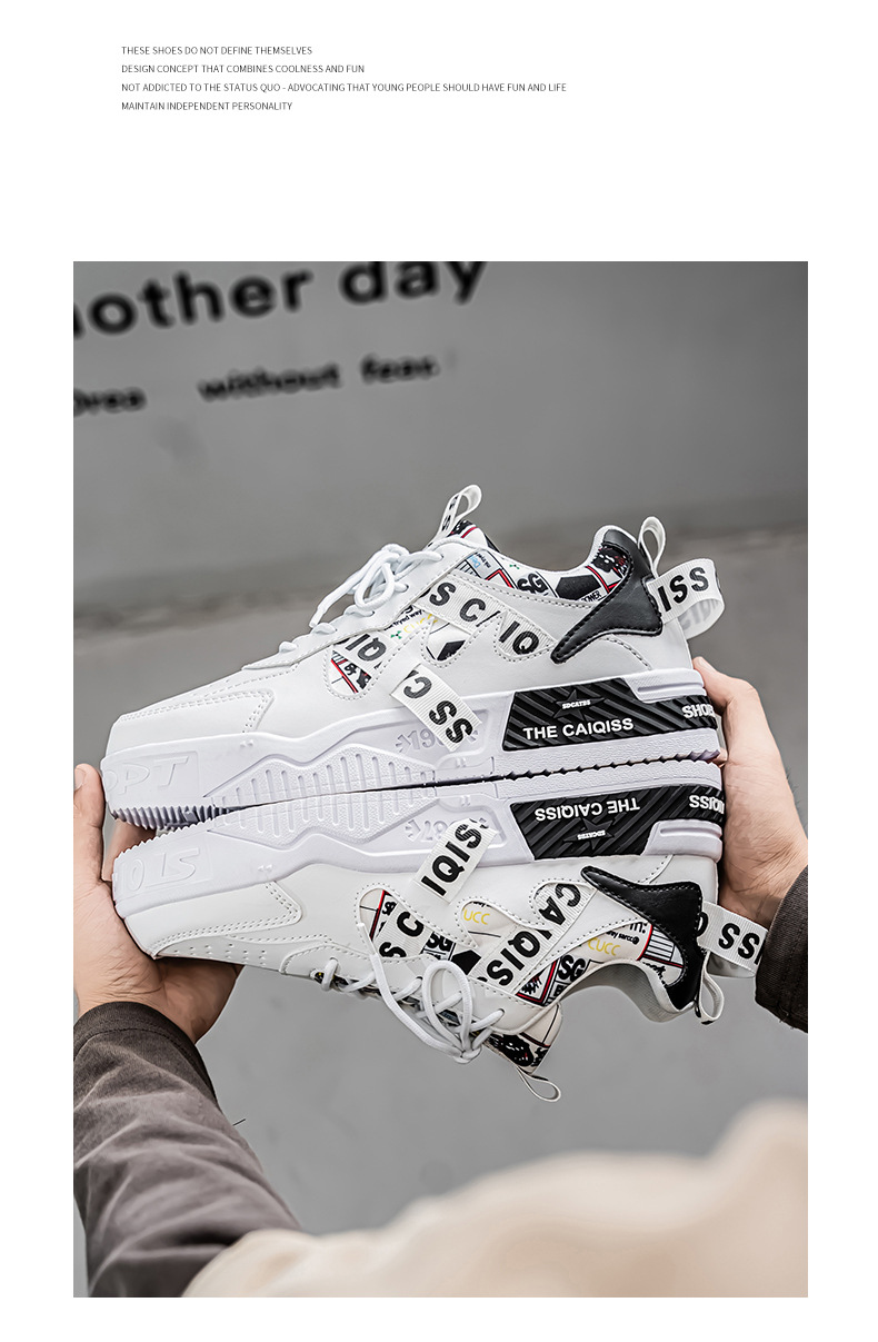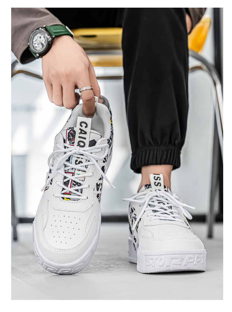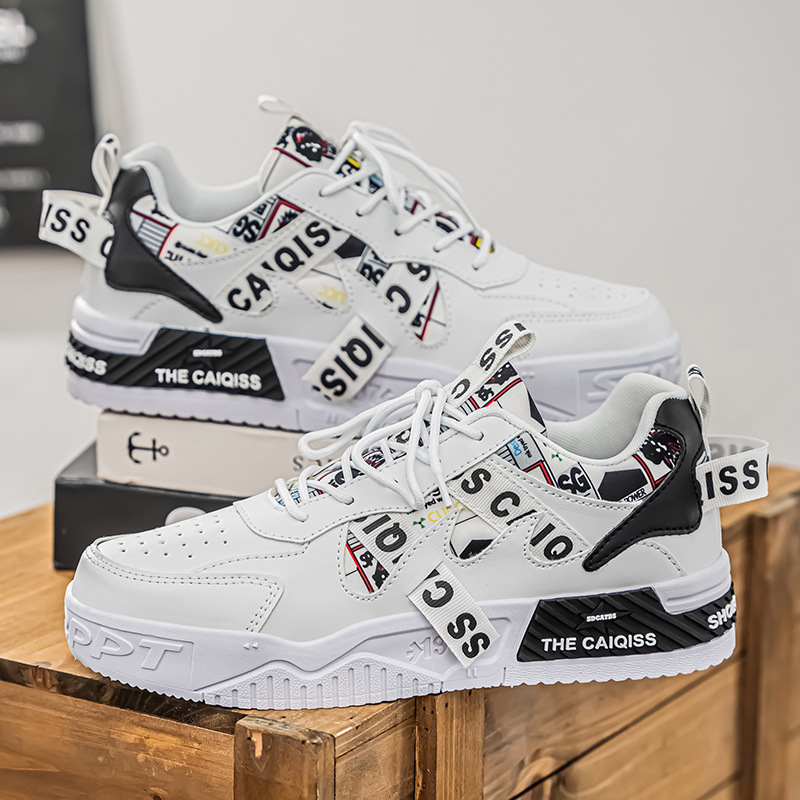 남성 로우 탑 신발 봄 2025 새로운 유행 브랜드 캐주얼 플랫 슈즈 올 매치 스포츠 두꺼운 밑창 작은 흰색 유행 신발스토어 가기
