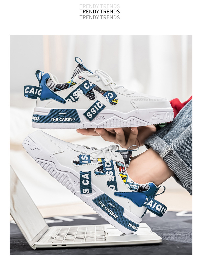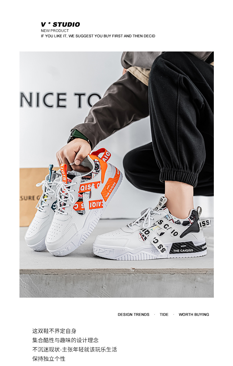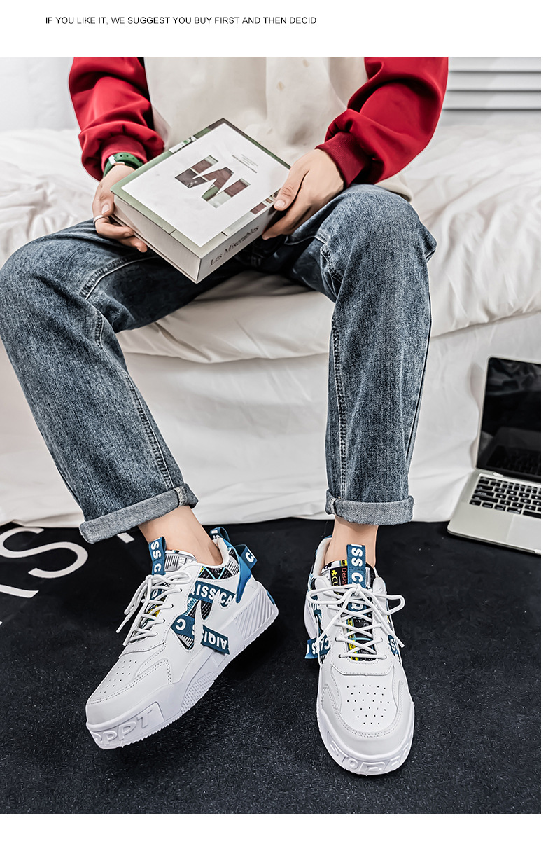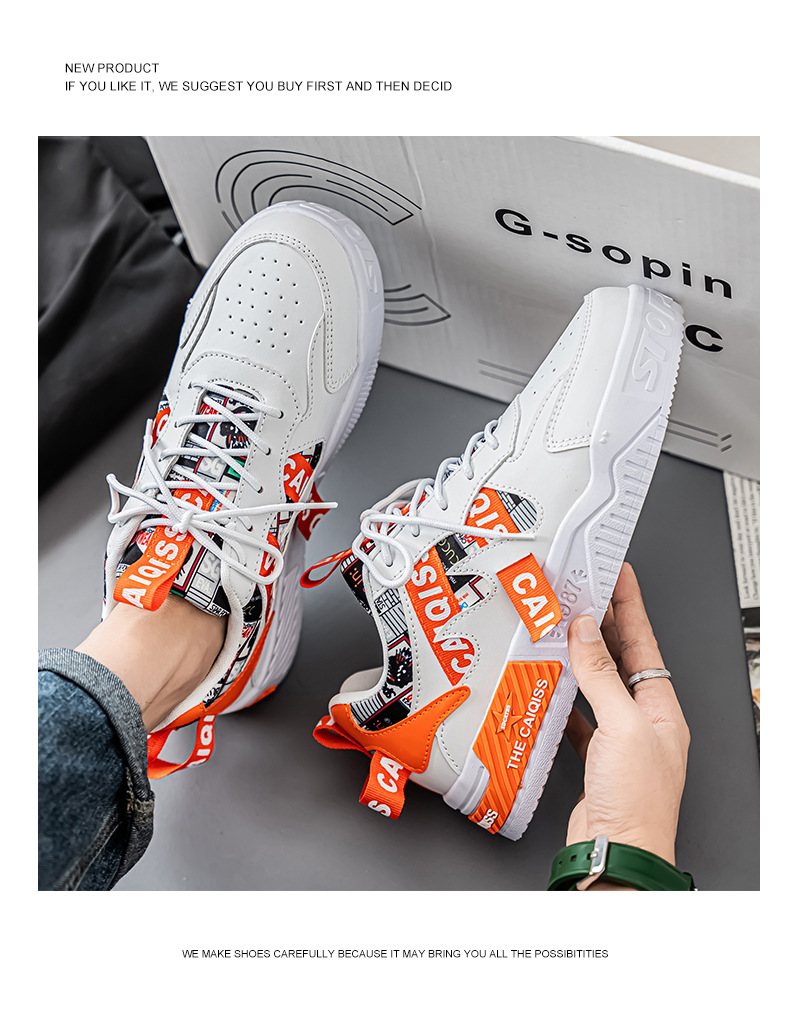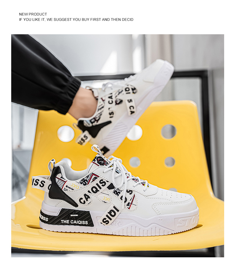 남성 로우 탑 신발 봄 2025 새로운 유행 브랜드 캐주얼 플랫 슈즈 올 매치 스포츠 두꺼운 밑창 작은 흰색 유행 신발스토어 가기