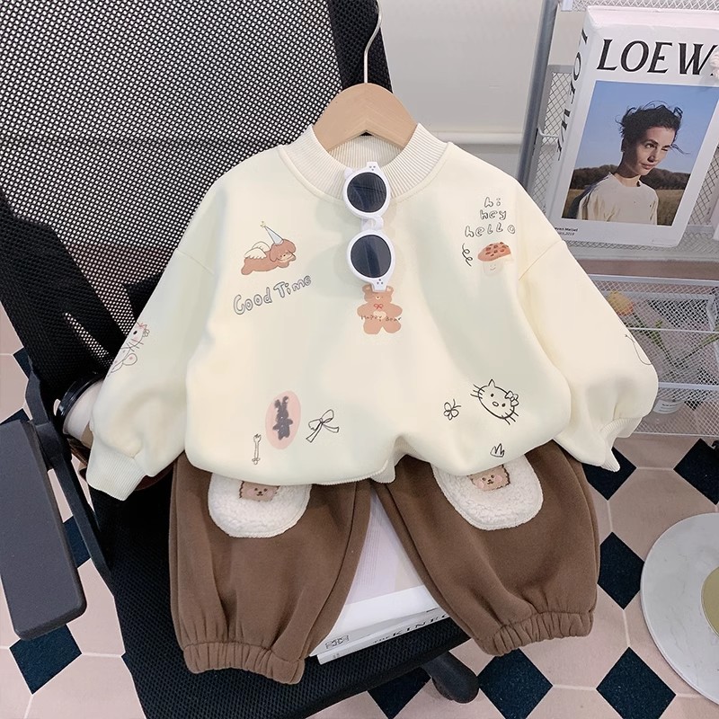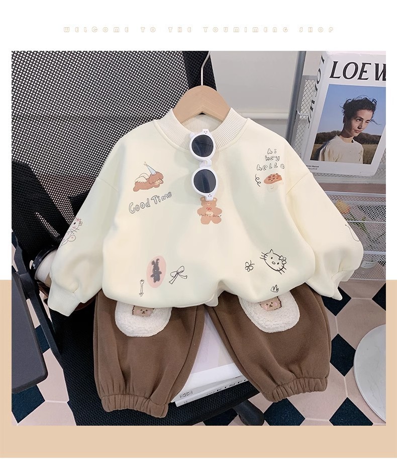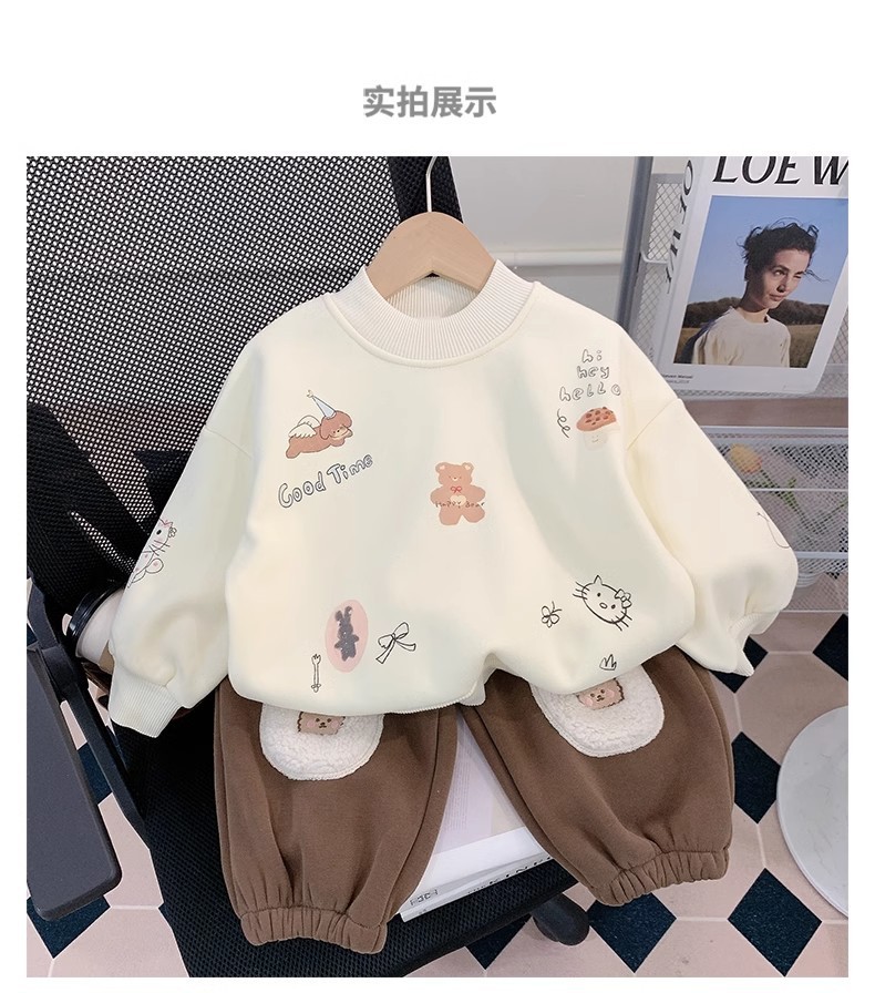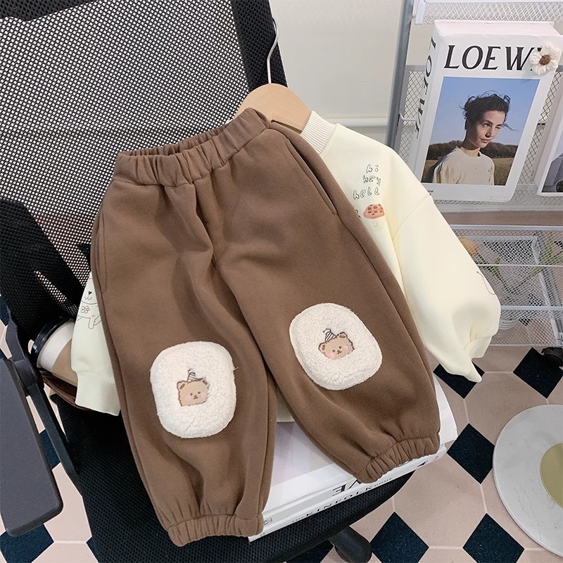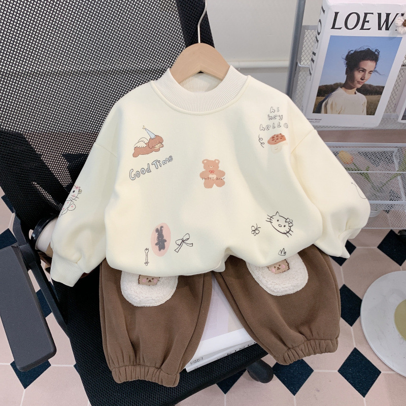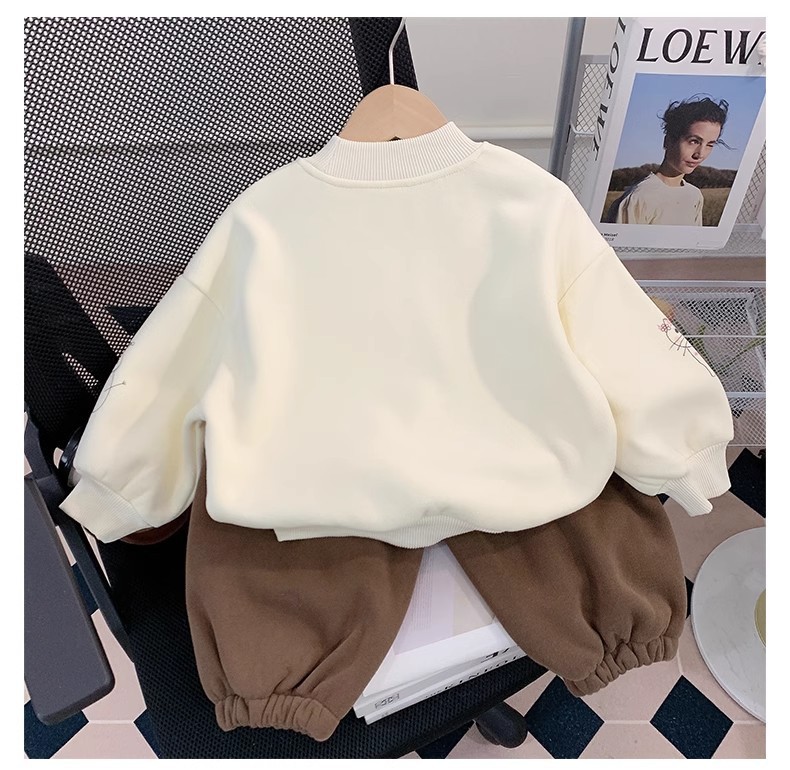 소년 세트 가을과 겨울 2025 새로운 외국 스타일의 어린이 기모 스웨터 아기 바지 투피스 세련된 겨울스토어 가기