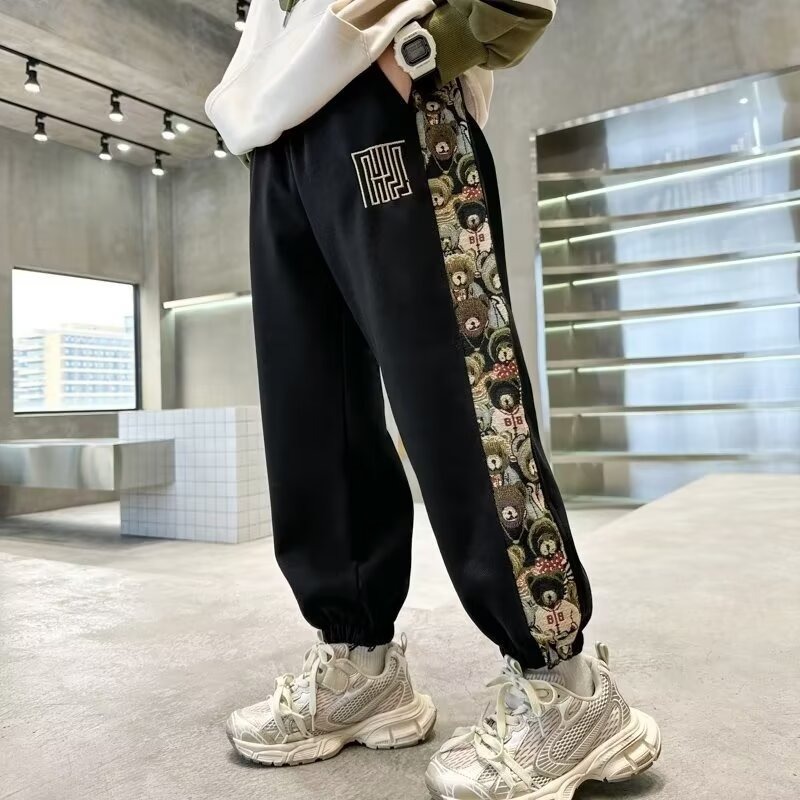 소년 바지 스포츠 바지 봄과 가을 2025 새로운 어린이 가을 튀김 거리 바지 큰 어린이 가을 유행 바지스토어 가기