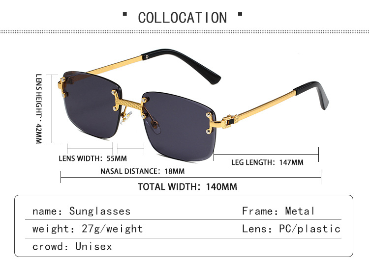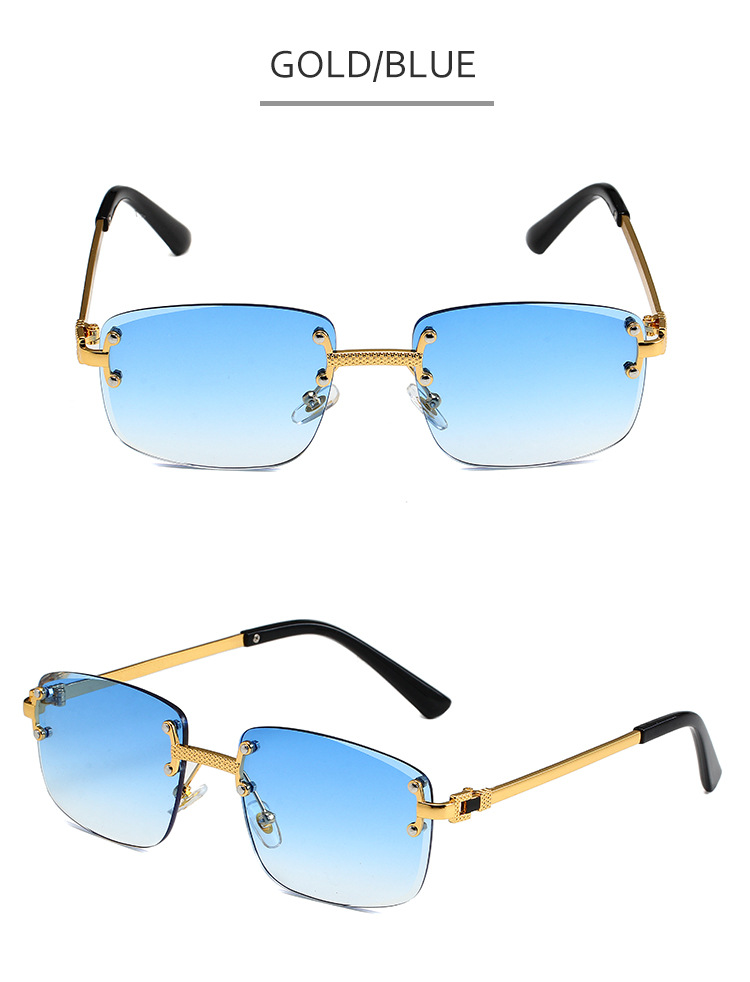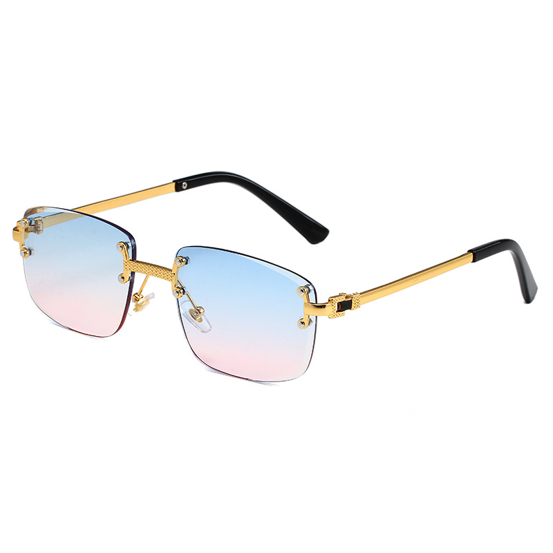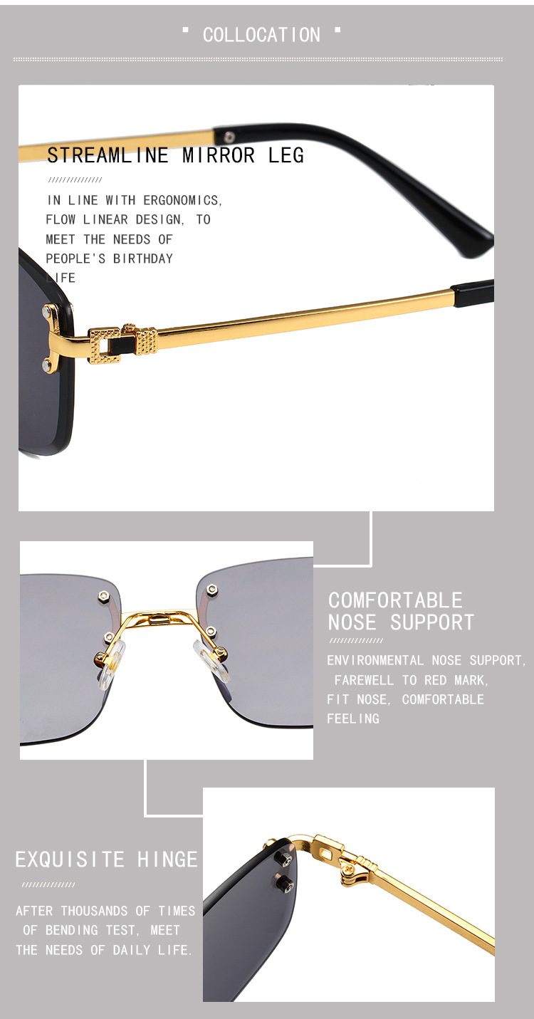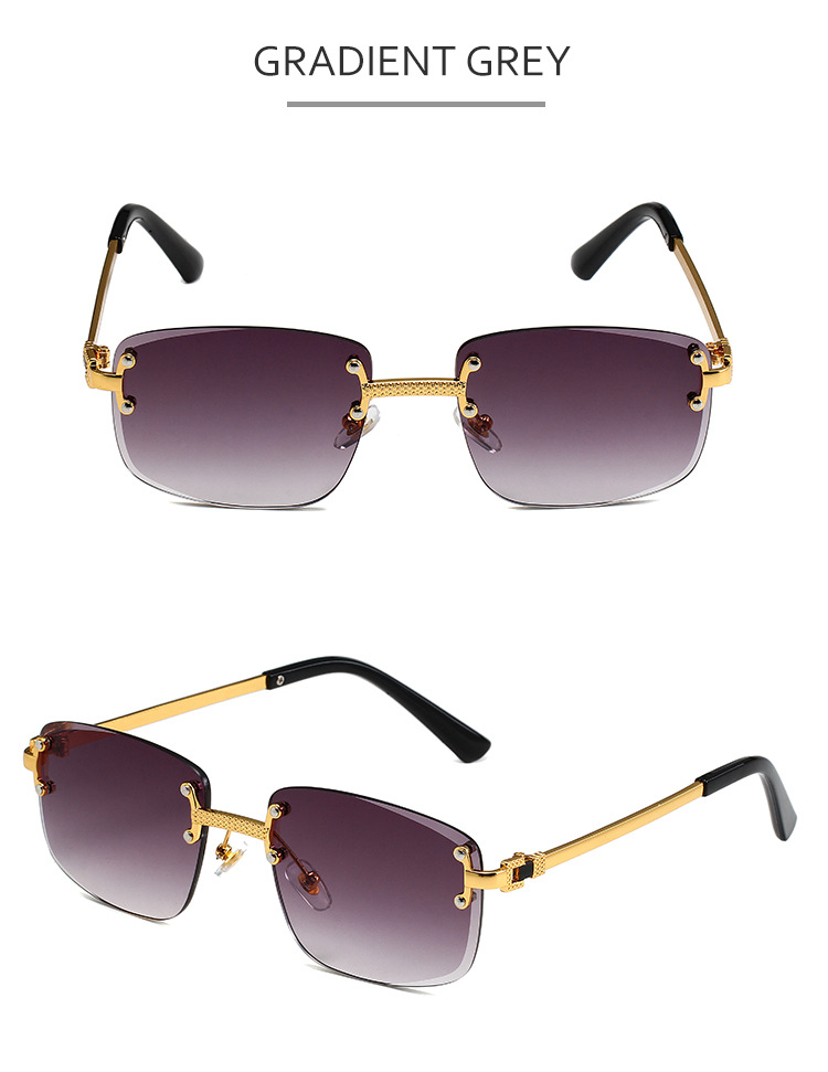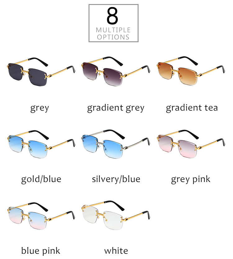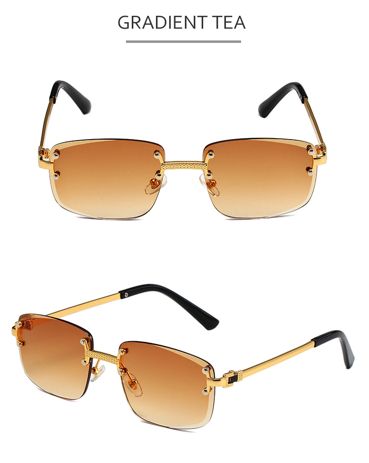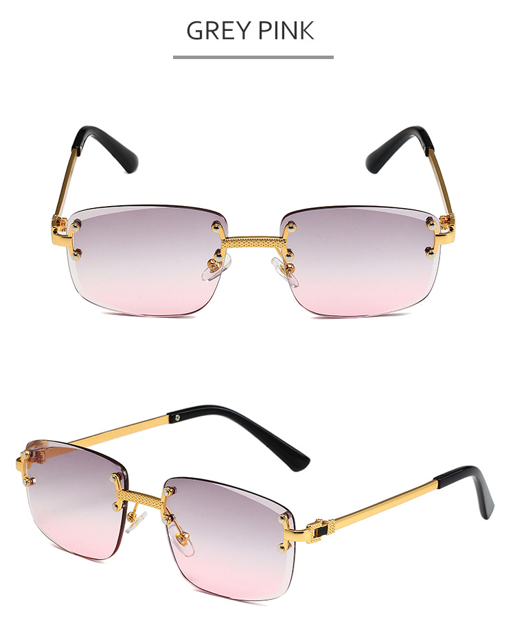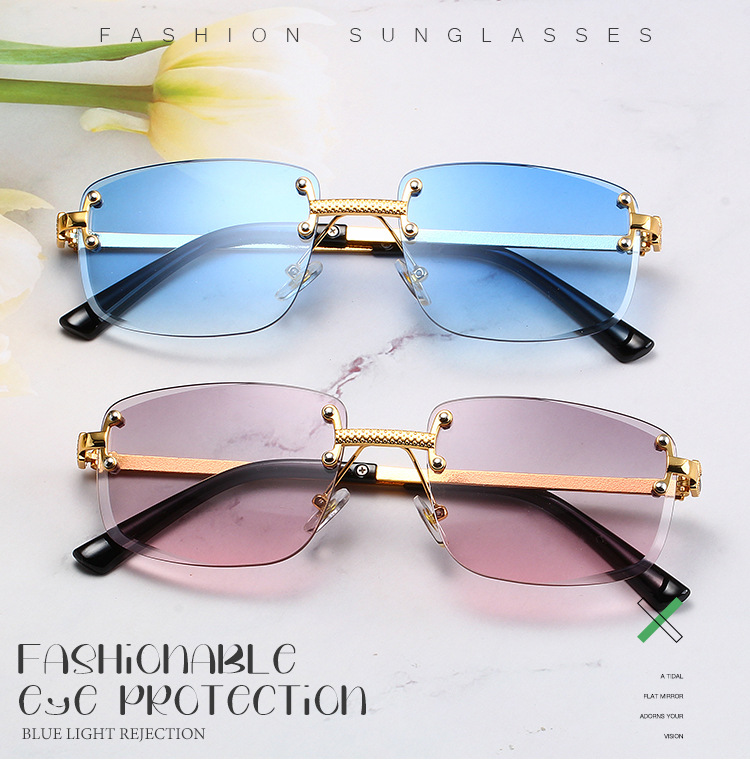 새로운 패션 프레임리스 선글라스 여성 인터넷-유명한 같은 스타일 작은 얼굴 선글라스 스퀘어 그라디언트 고급 센스 컷 에지 안경