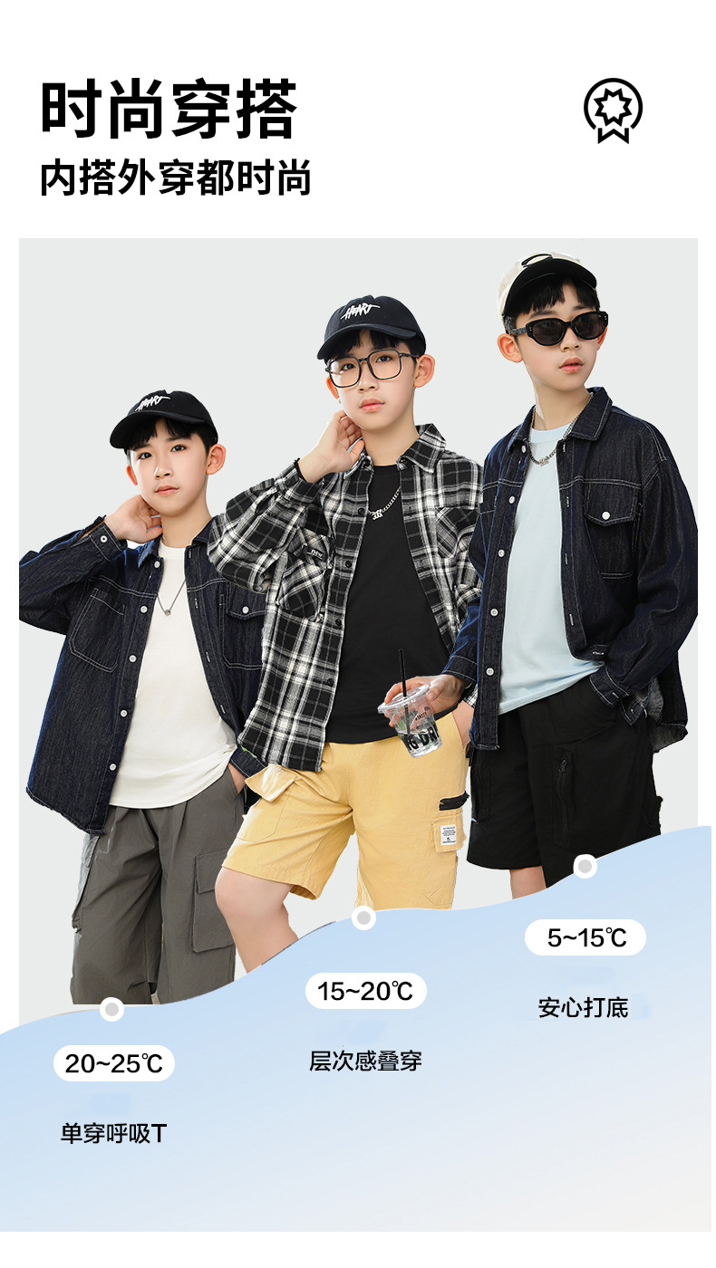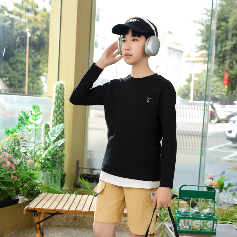 25 봄과 가을 어린이 느슨한 캐주얼 화이트 T 대형 소년과 소녀 솔리드 컬러 크루 넥베이스 셔츠 간단한 내부 재킷