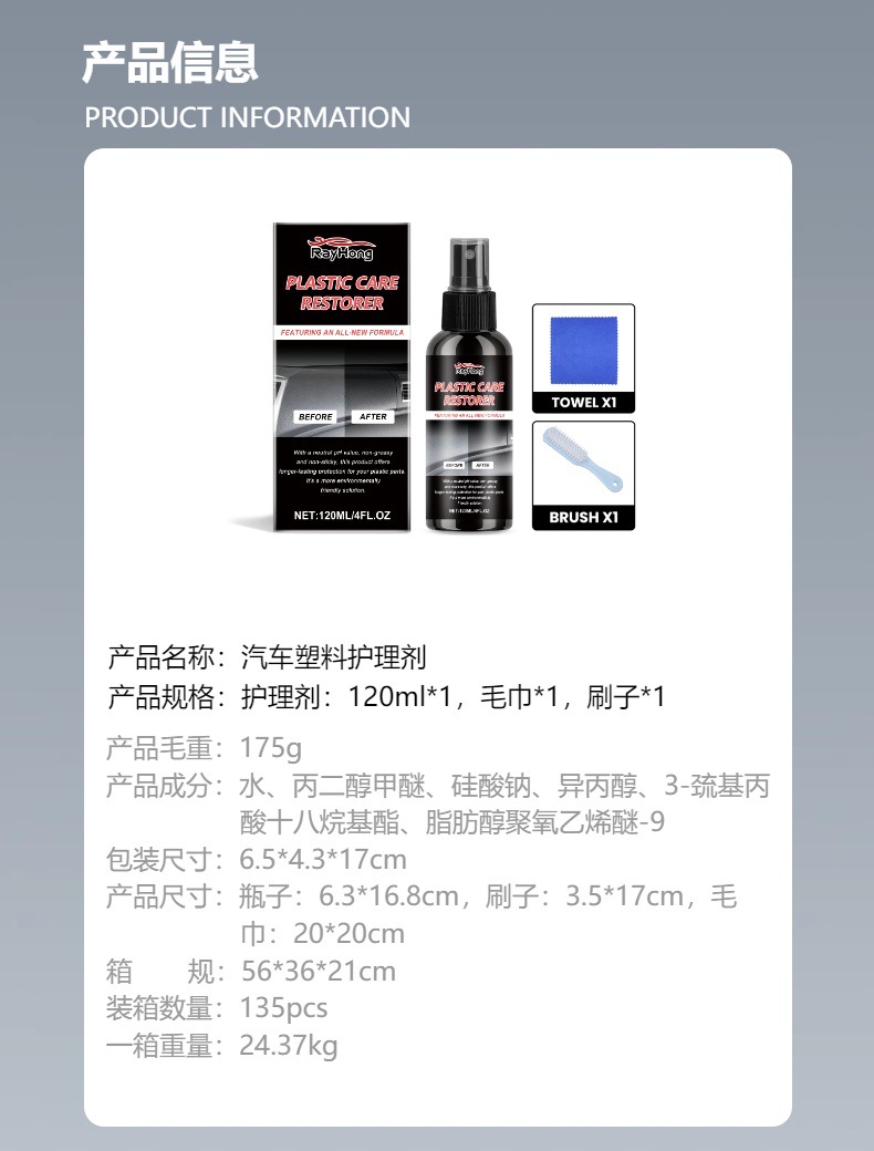 RAYHONG 자동차 플라스틱 케어 에이전트 자동차 플라스틱 인테리어 부품 청소 크리스탈 코팅 경화 코팅 에이전트스토어 가기