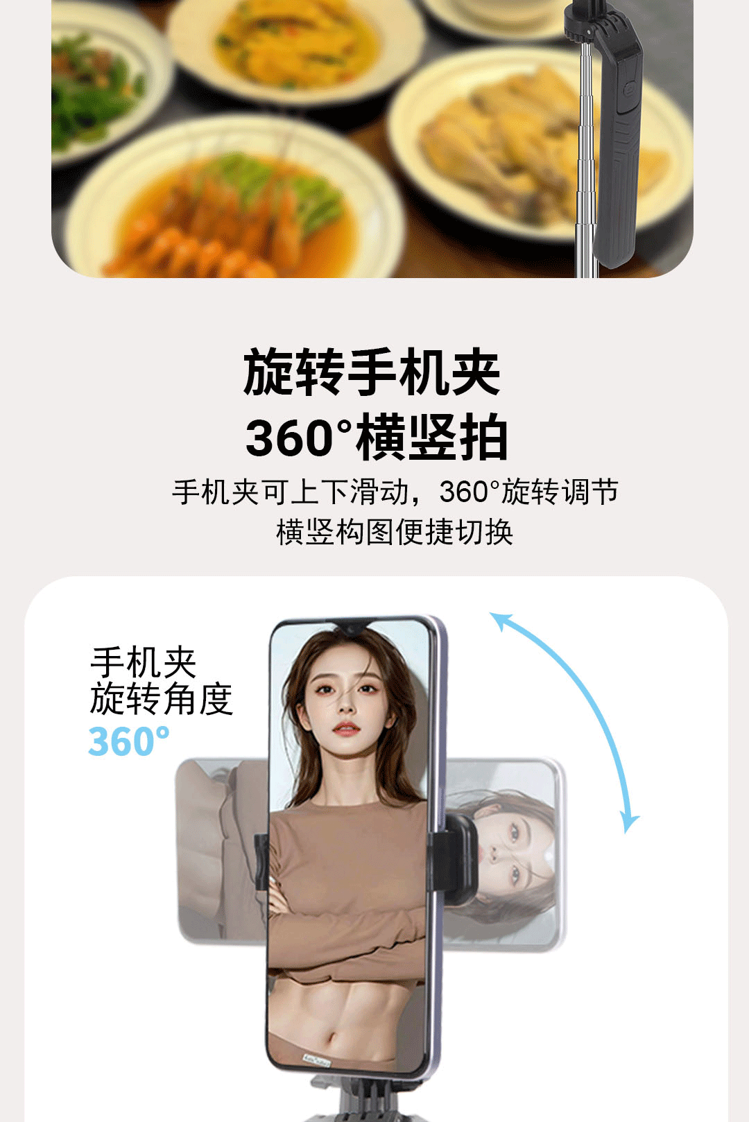 국경 다기능 미니 휴대 전화 카메라 아티팩트 블루투스 셀카 스틱 여행 휴대용 360 회전 바닥 스탠드