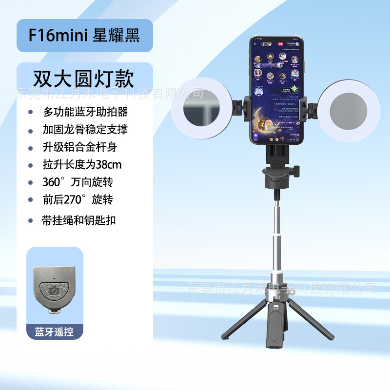 • F16mini 알루미늄 합금 블랙 + 더블 대형 원형 조명 [리프트 38CM + 강화 용골 + 블루투스 리모컨]