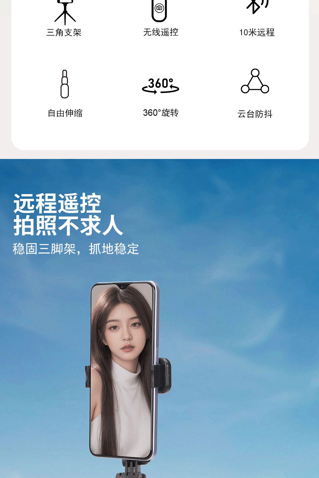 • [업그레이드된 듀플렉스 킬 강화 4각 + 충전 블루투스 리모컨] 알루미늄 합금 슈퍼 미니 셀카봉 + 뷰티 싱글 헤드라이트