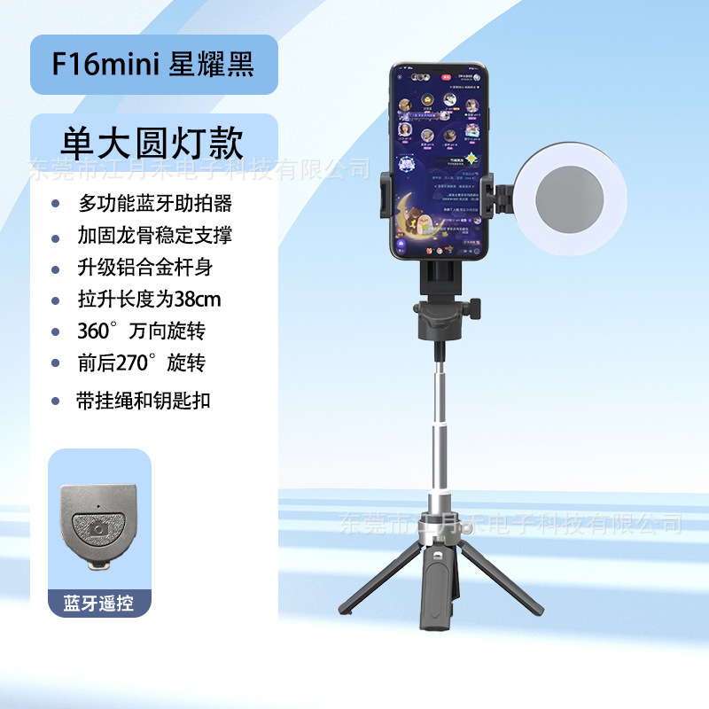 • F16mini 알루미늄 합금 블랙 + 단일 대형 원형 조명 [리프트 38CM + 강화 용골 + 블루투스 리모컨]