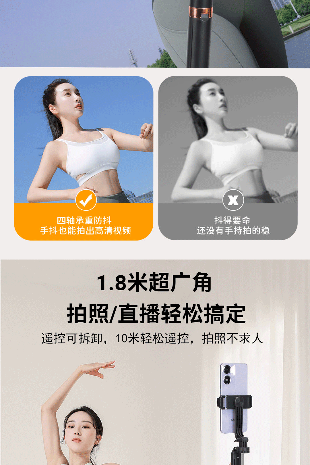• [업그레이드된 듀플렉스 킬 강화 4각 + 충전 블루투스 리모컨] 알루미늄 합금 슈퍼 미니 셀카봉