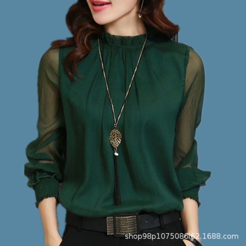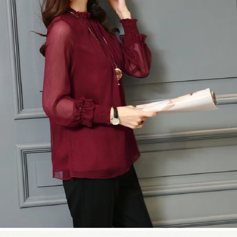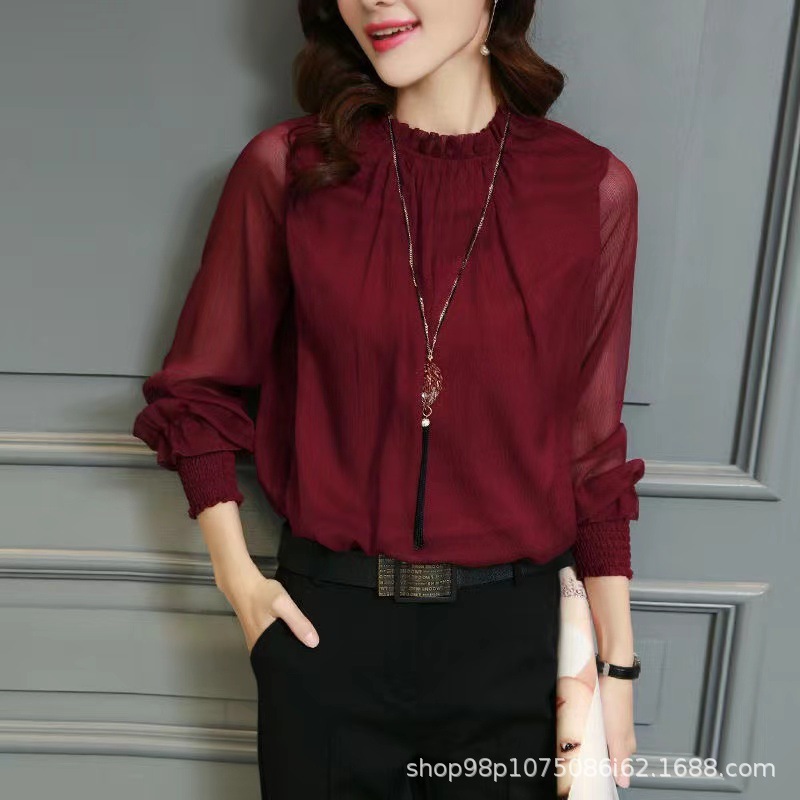 스탠드 칼라 연꽃 칼라 쉬폰 셔츠 ol 프로 봄 새로운 매우 요정 기질베이스 셔츠 쉬폰 탑 셔츠 트렌디