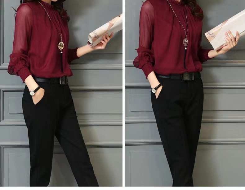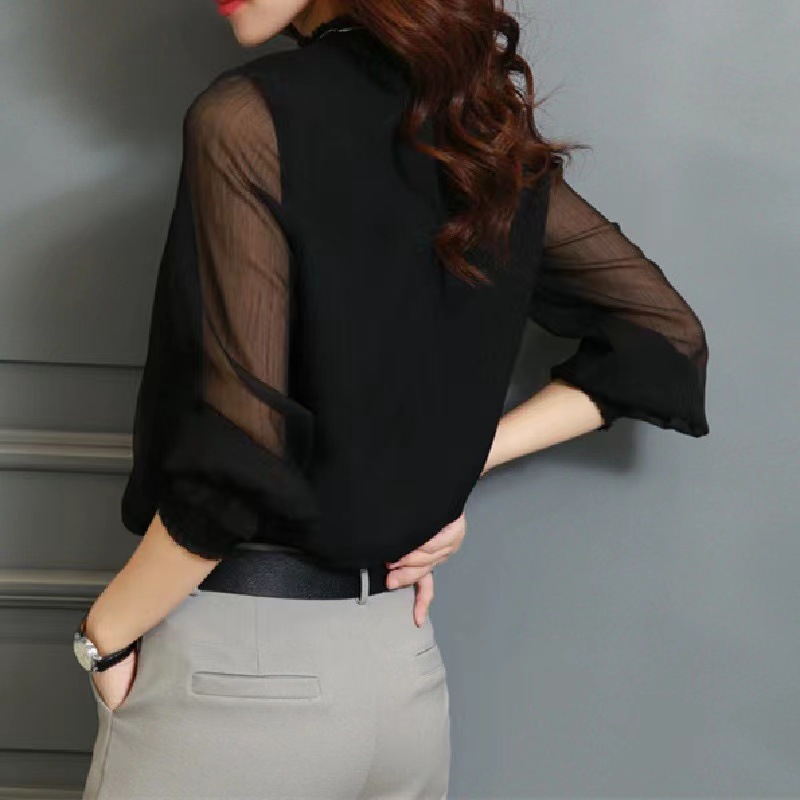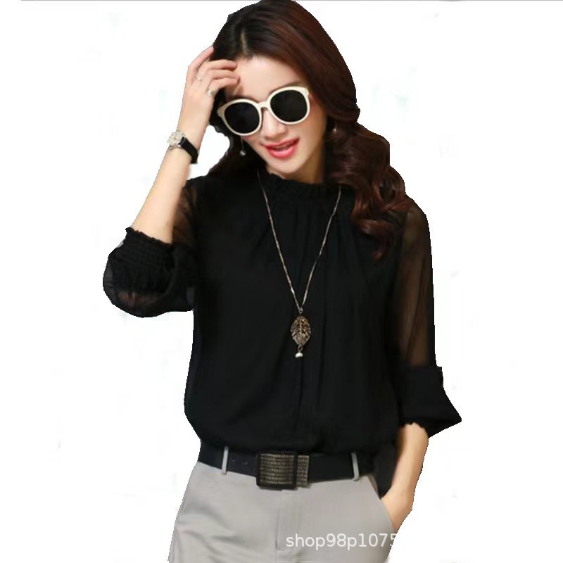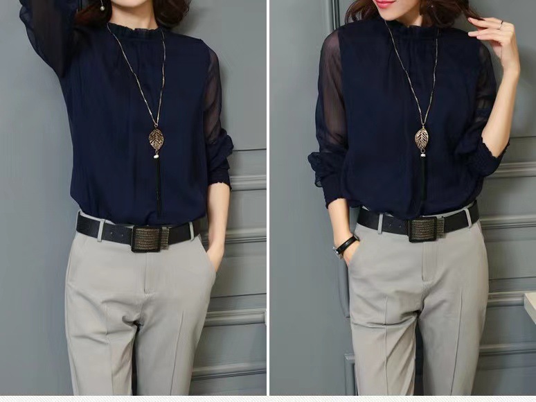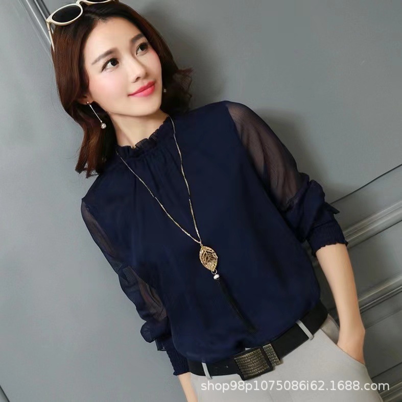 스탠드 칼라 연꽃 칼라 쉬폰 셔츠 ol 프로 봄 새로운 매우 요정 기질베이스 셔츠 쉬폰 탑 셔츠 트렌디스토어 가기