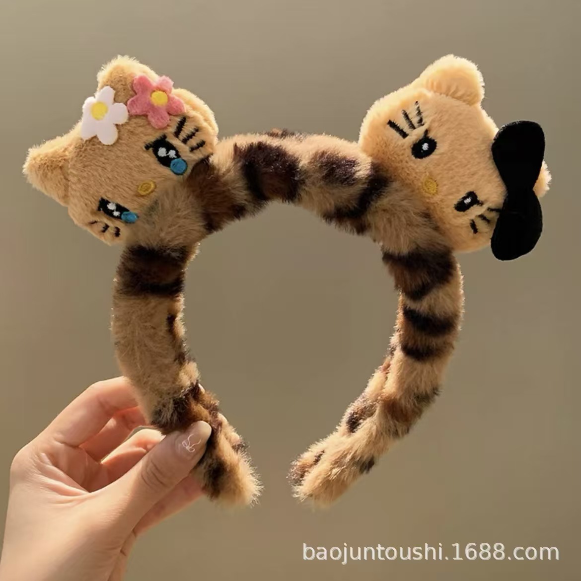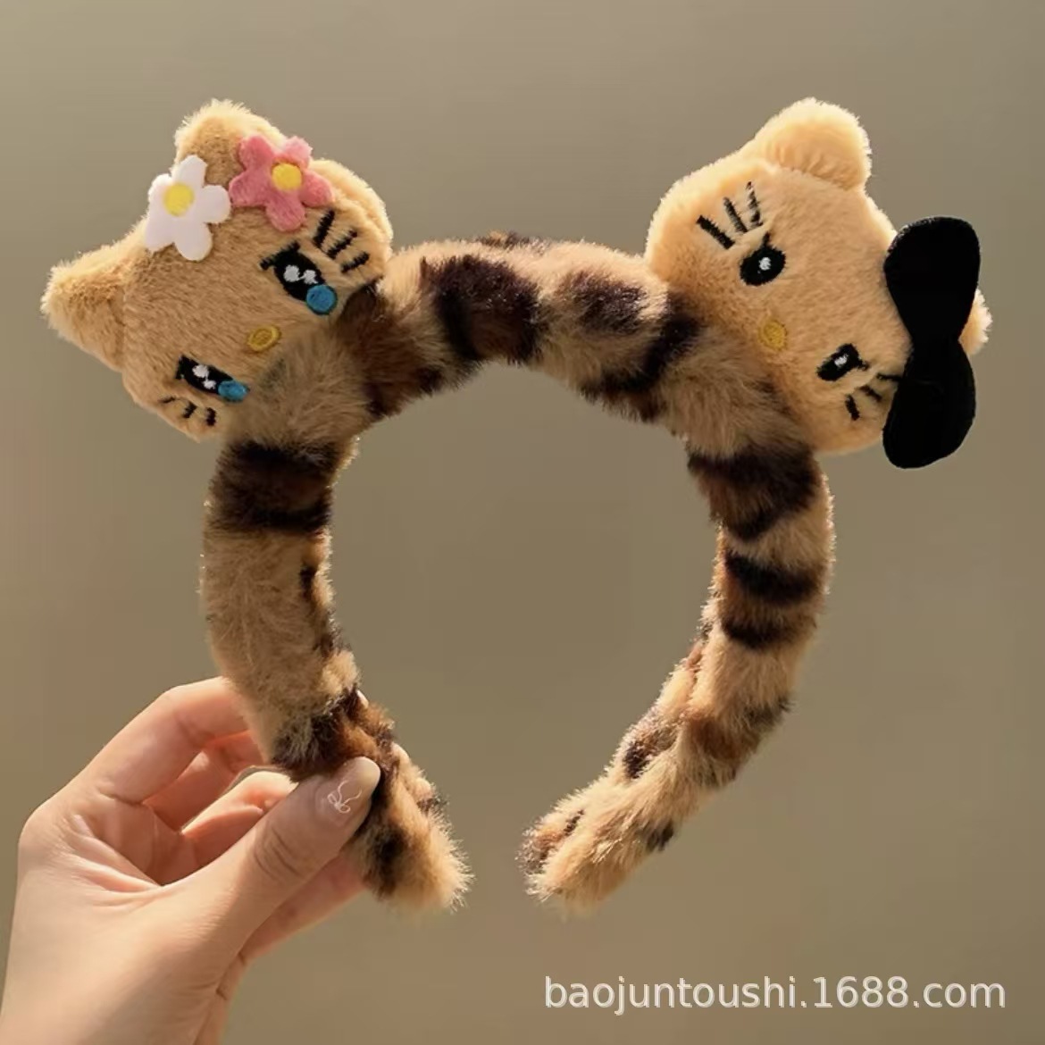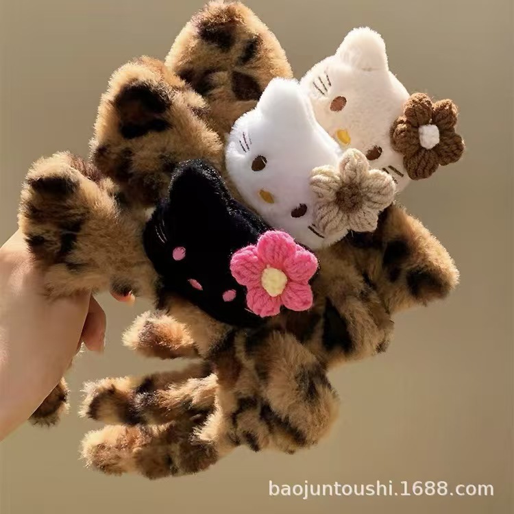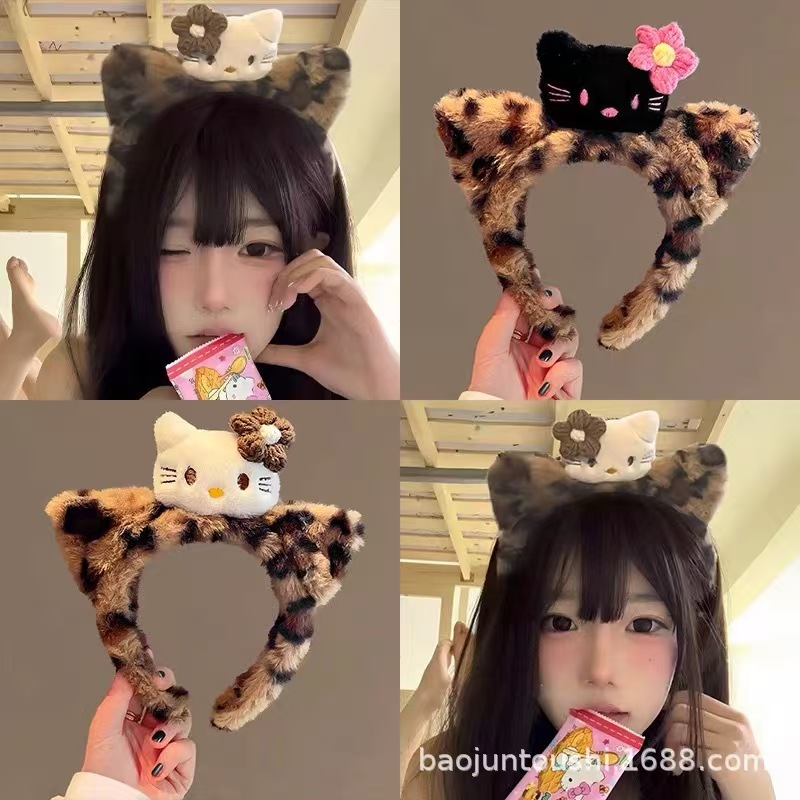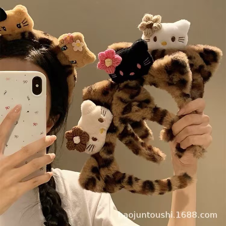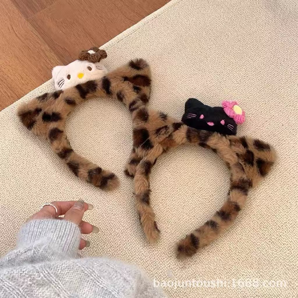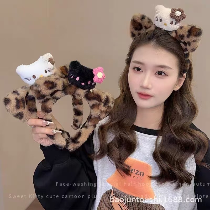 새로운 3 헤드 Kt 고양이 머리띠 레오파드 패턴 가을과 겨울 머리띠 헤어 액세서리 여성의 재미 있는 드레싱 헤어 워시 얼굴 하이 엔드 슈퍼 귀여운 머리띠스토어 가기