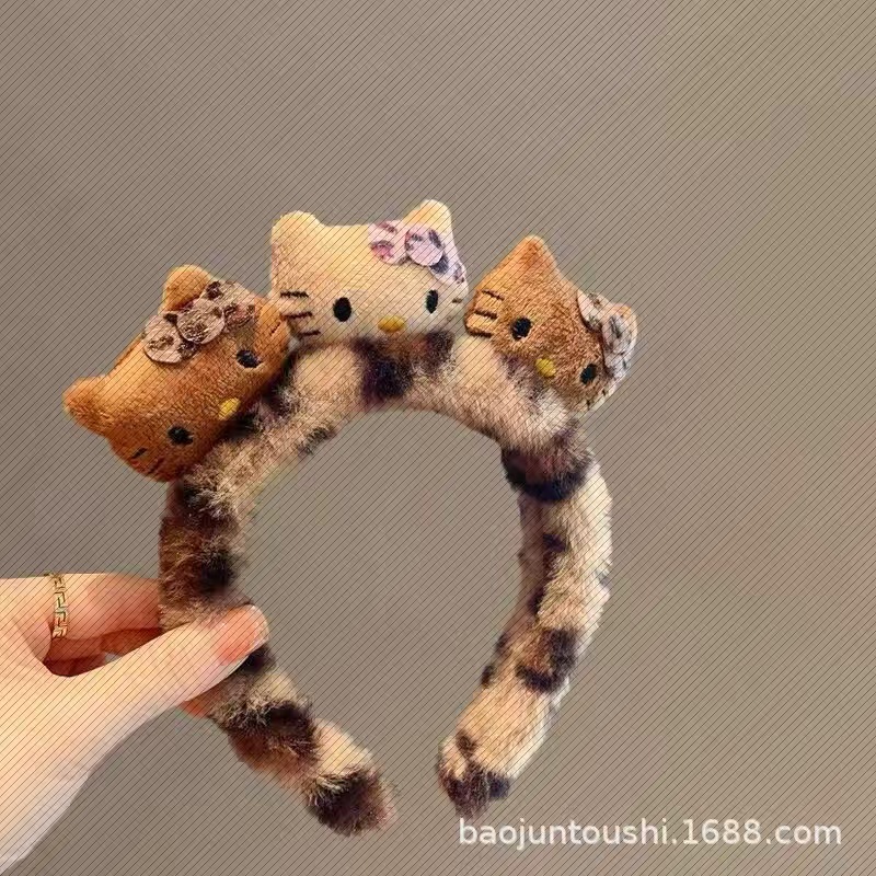 새로운 3 헤드 Kt 고양이 머리띠 레오파드 패턴 가을과 겨울 머리띠 헤어 액세서리 여성의 재미 있는 드레싱 헤어 워시 얼굴 하이 엔드 슈퍼 귀여운 머리띠