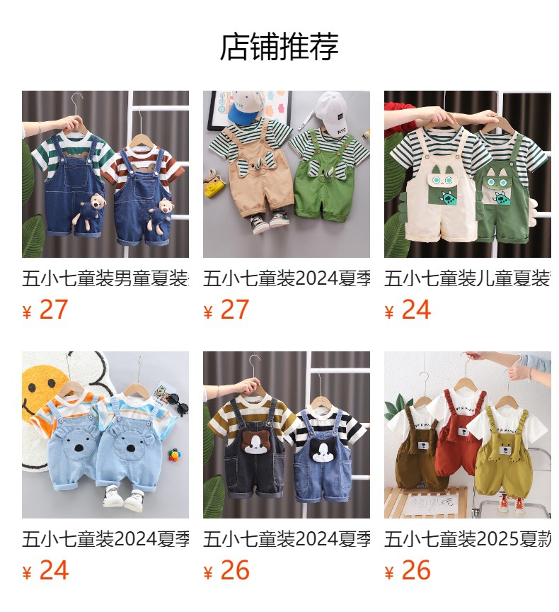 5 개의 작은 7 개의 아동복 2025 여름 새로운 0-4 세 소년 소녀 편지 오리 스트랩 데님 2 피스 세트스토어 가기