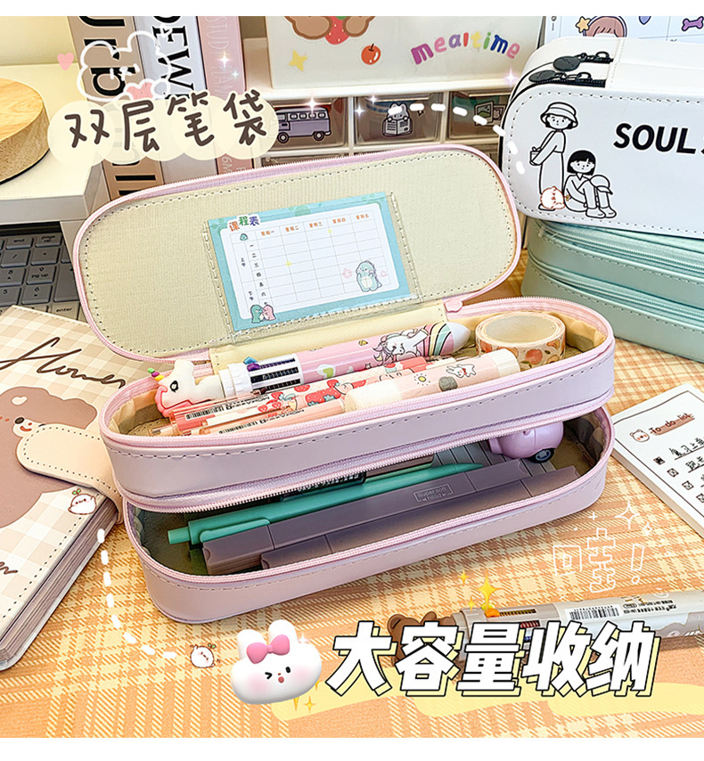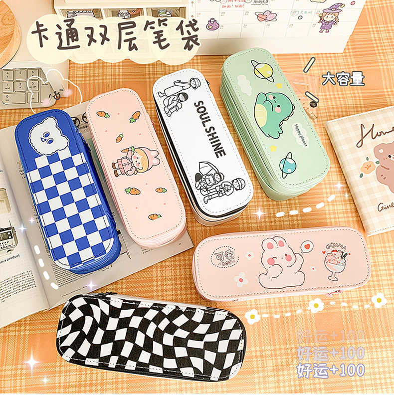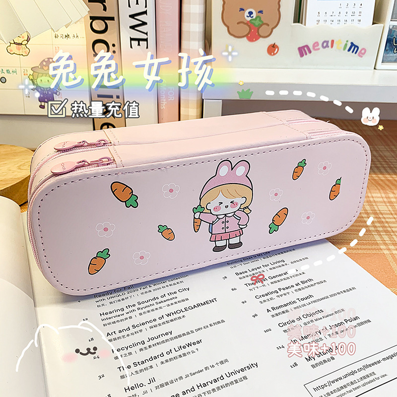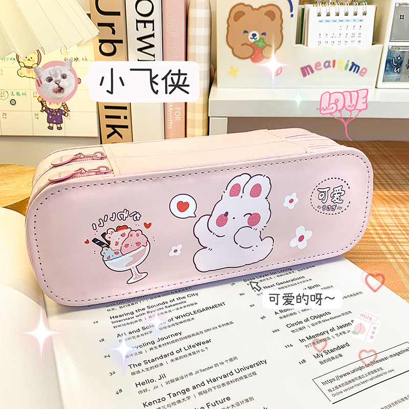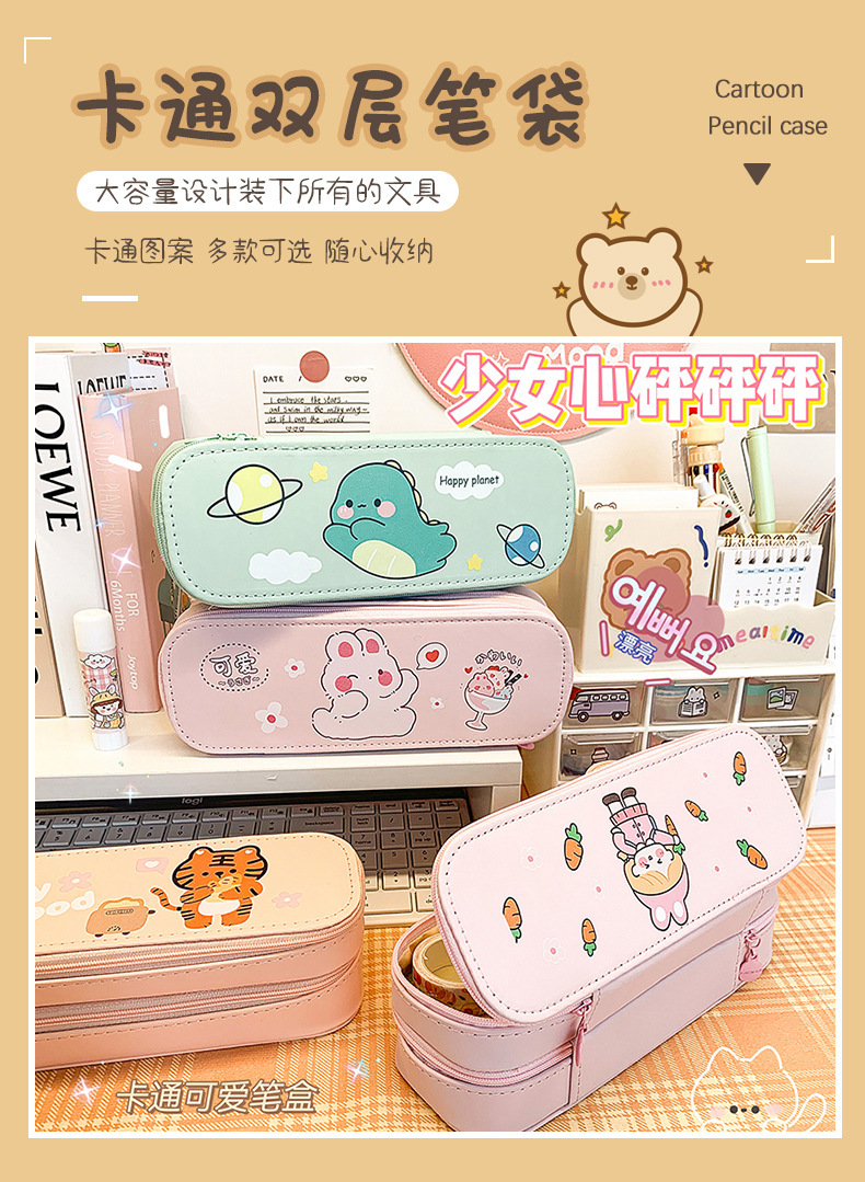 소녀의 만화 3 층 문구 상자 더블 레이어 연필 케이스 대형 연필 케이스 귀여운 학생 간단한 대용량 연필 케이스스토어 가기