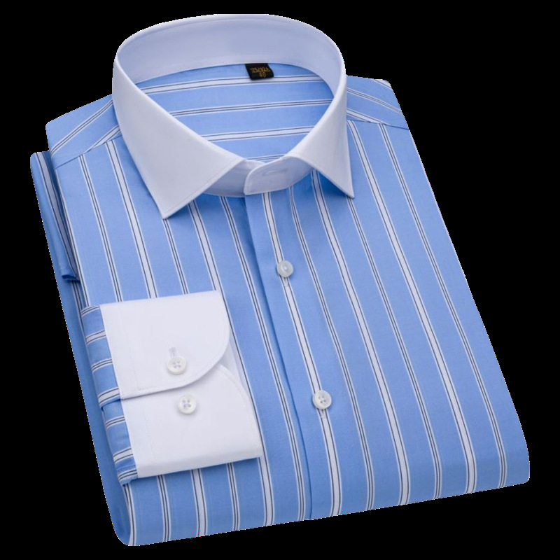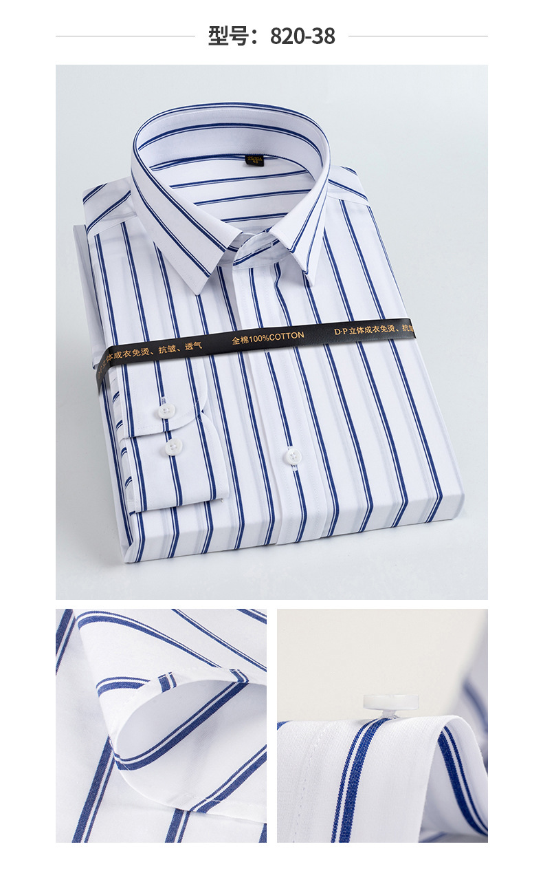 남성 셔츠 순면 100수 DP 기성품 노다림질 긴팔 2025 비즈니스 캐주얼 이색 칼라 셔츠 스트라이프스토어 가기