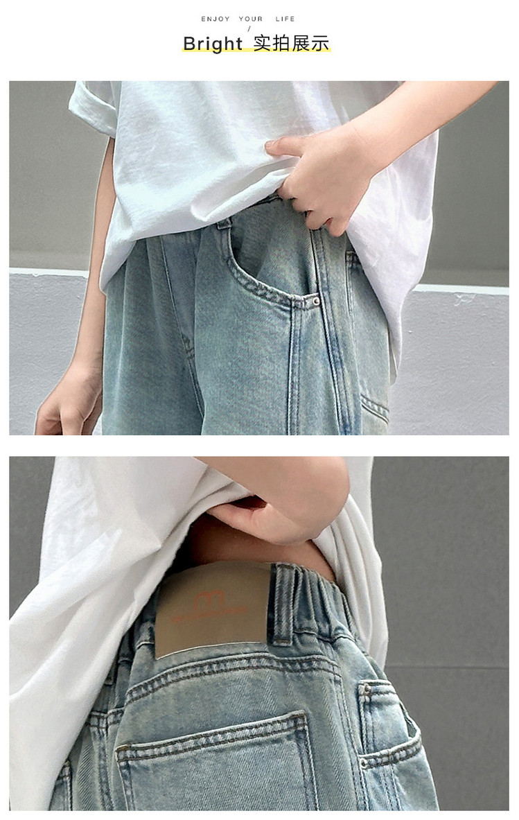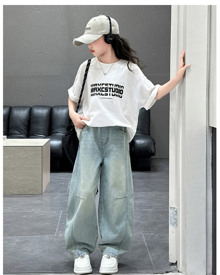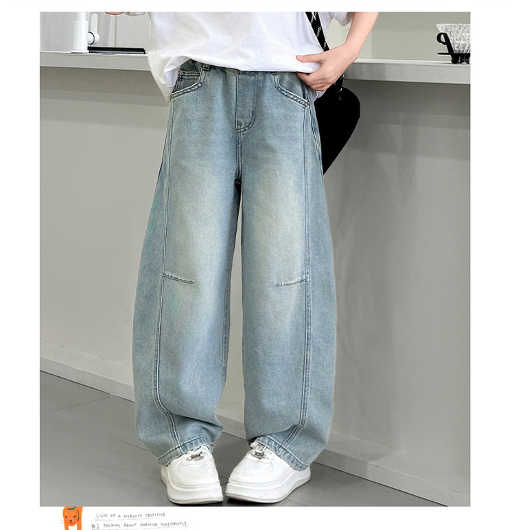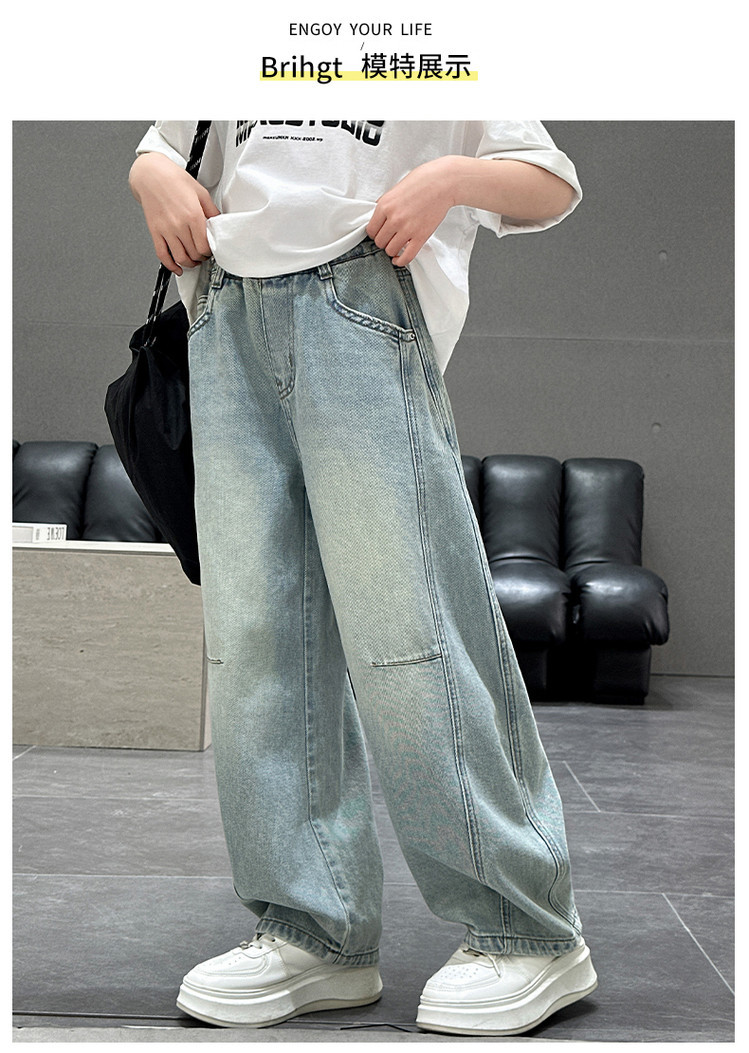 소녀 청바지 봄과 가을 2025 새로운 스타일 어린이 서양식 느슨한 넓은 다리 바지 소녀 캐주얼 데님 시미 터 바지스토어 가기