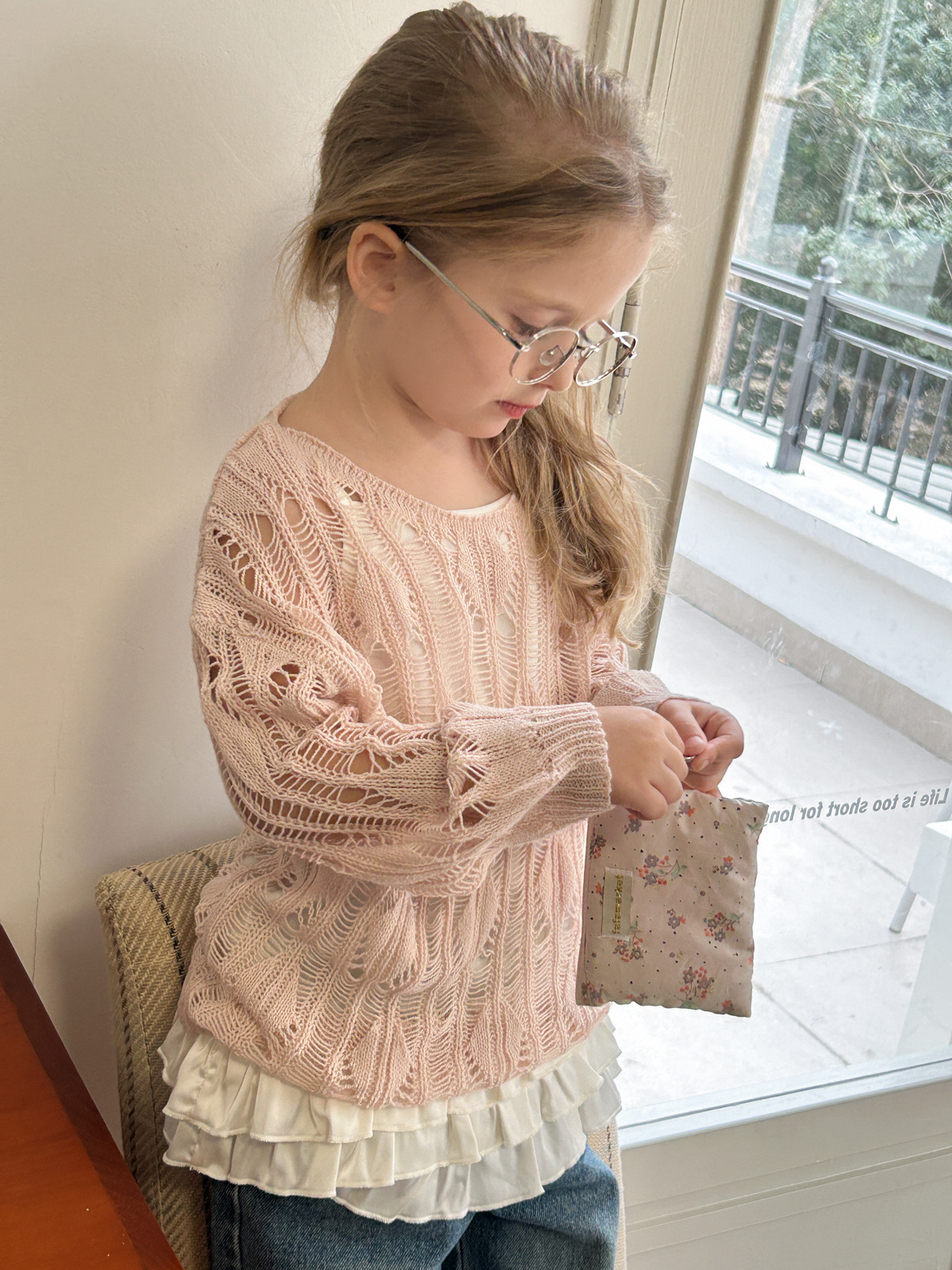 2025 봄과 여름 새로운 어린이 한국식 패셔너블 루즈 올매치 니트 스웨터 걸스 할로우 아웃 게으른 스타일 스웨터스토어 가기