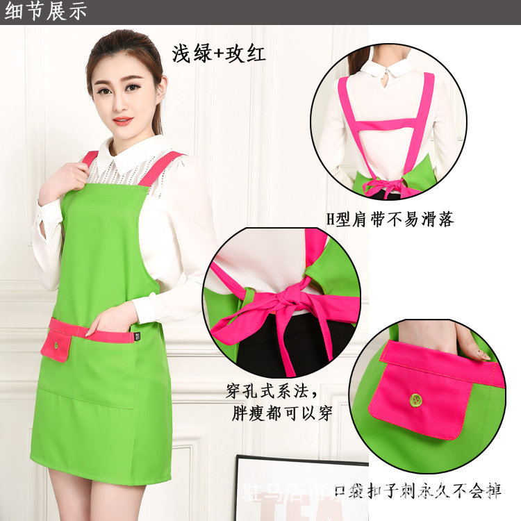 • 형광 그린 앞치마 + 로즈 레드 숄더 스트랩