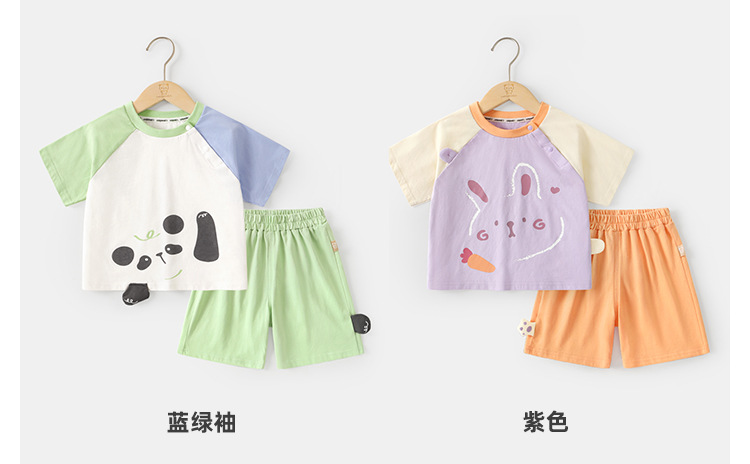 카카 팬더 어린이 의류 소녀 반팔 세트 아기 반바지 아기 여름 옷 소년 여름 옷 아동복