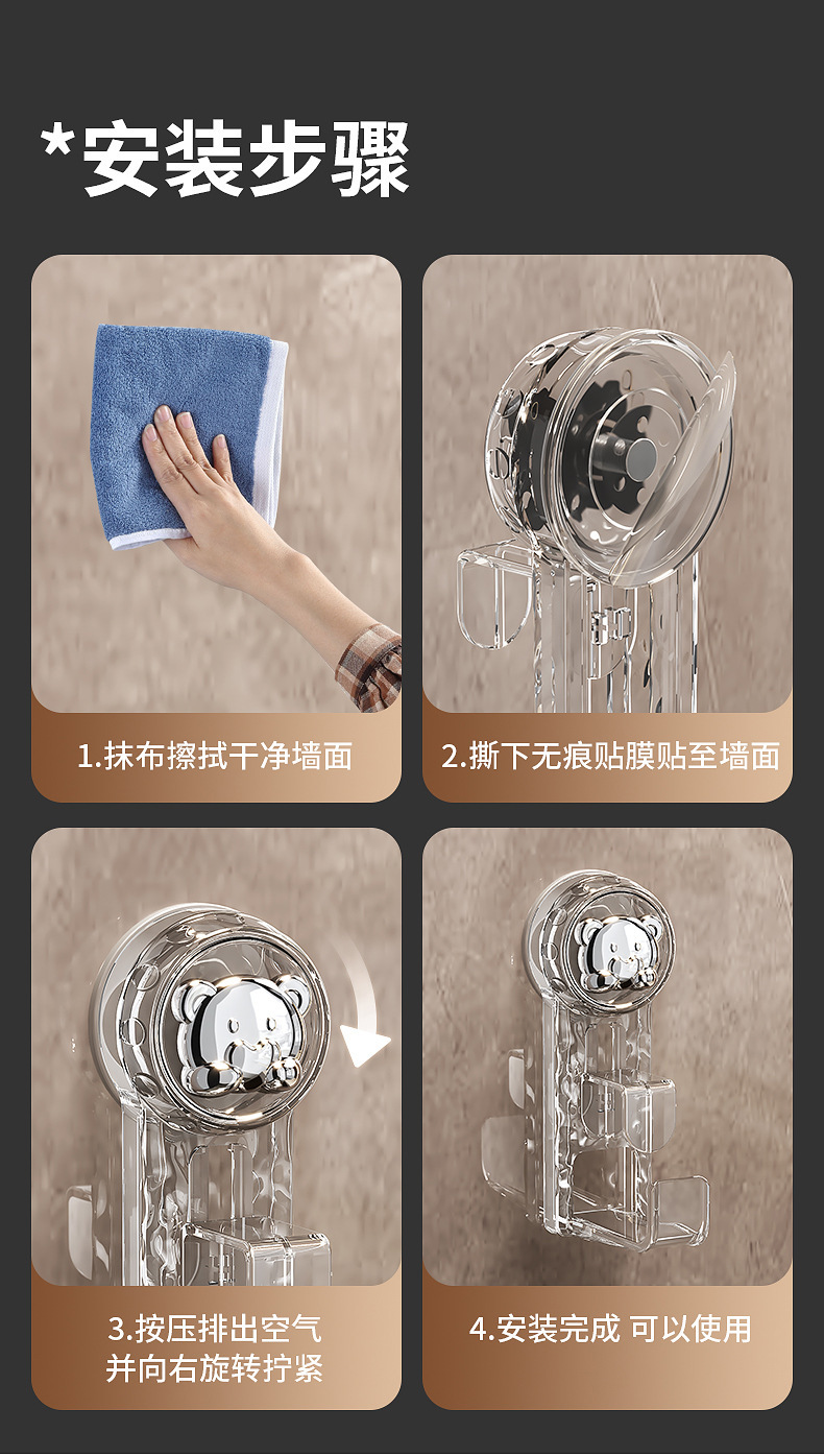곰 빨판 세탁기 후크 개폐식 이동식 욕실 벽 교수형 다중 사용 후크 세면대스토어 가기