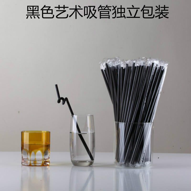 일회용 블랙 아트 밀짚 독립 포장 창조적 인 모양 구부릴 수있는 바 칵테일 주스 팩 린다