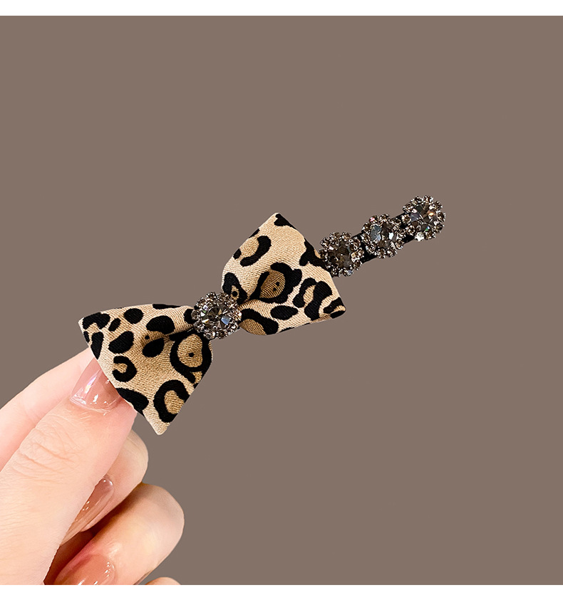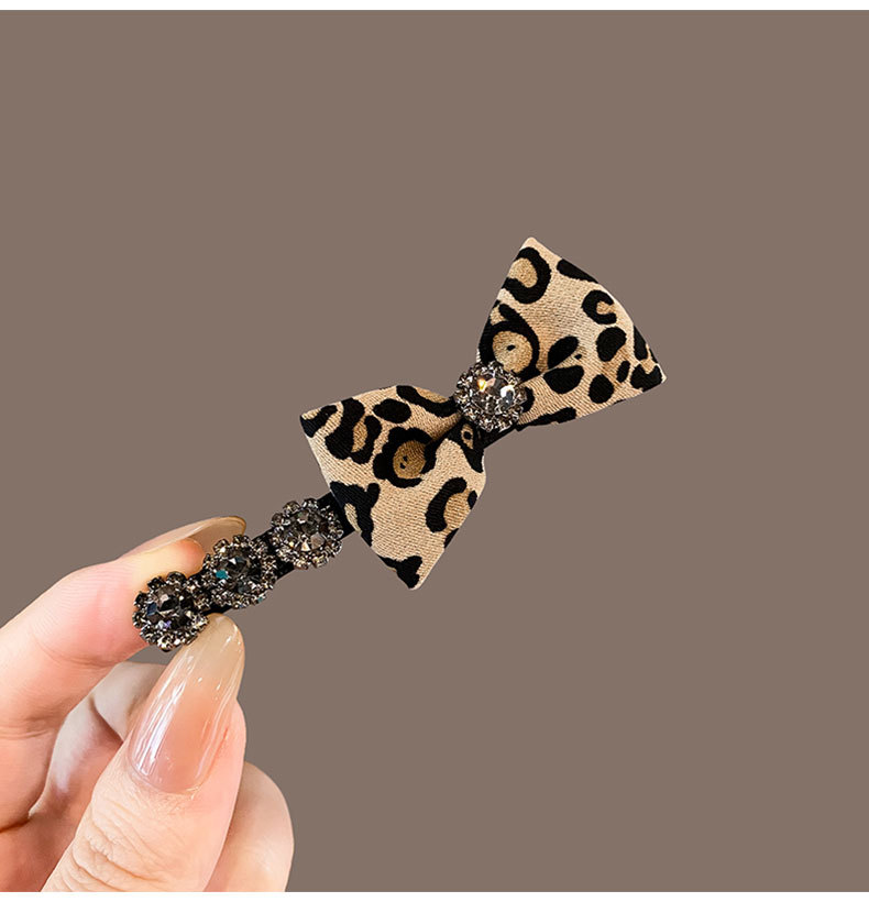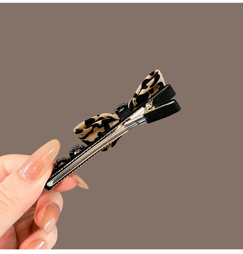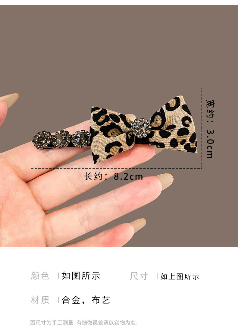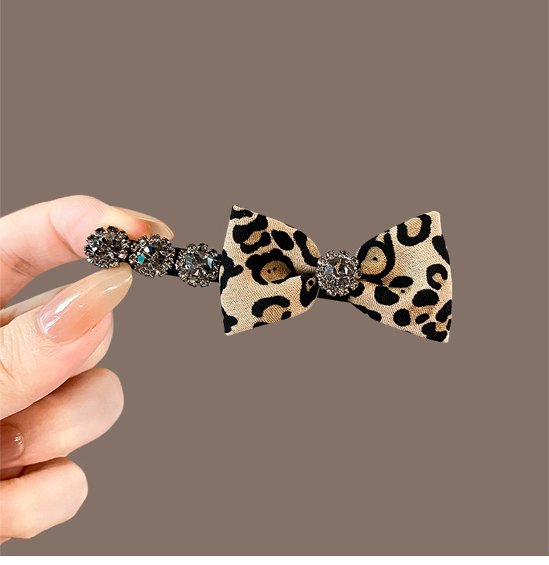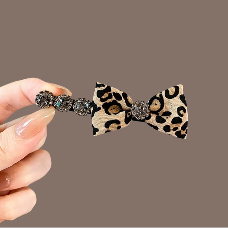 레오파드 무늬 더블 활 다이아몬드 사이드 클립 고급 사이드 뱅 헤어핀 덕빌 클립 라인스톤 원 캐릭터 클립 헤드웨어