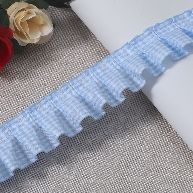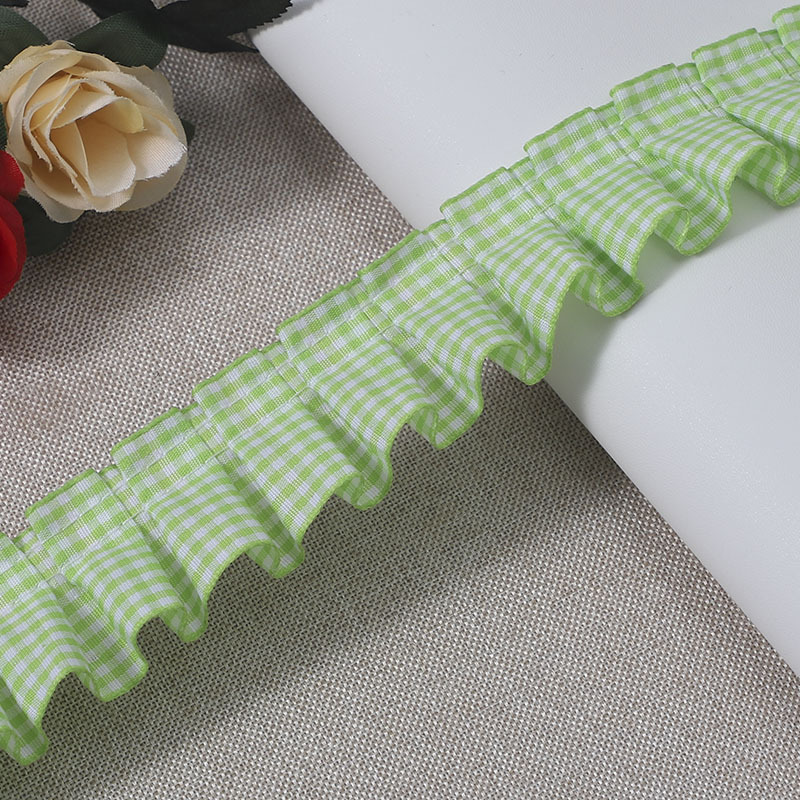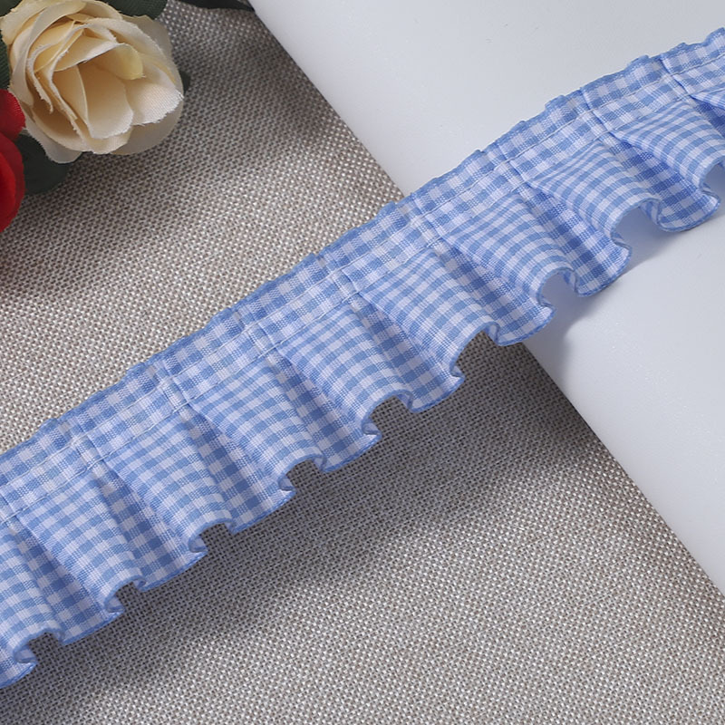 공장 재고 4cm 격자 무늬 주름 된 폴리 에스테르 할인 레이스 수제 DIY 의류 인형 스커트 연꽃 잎 액세서리스토어 가기
