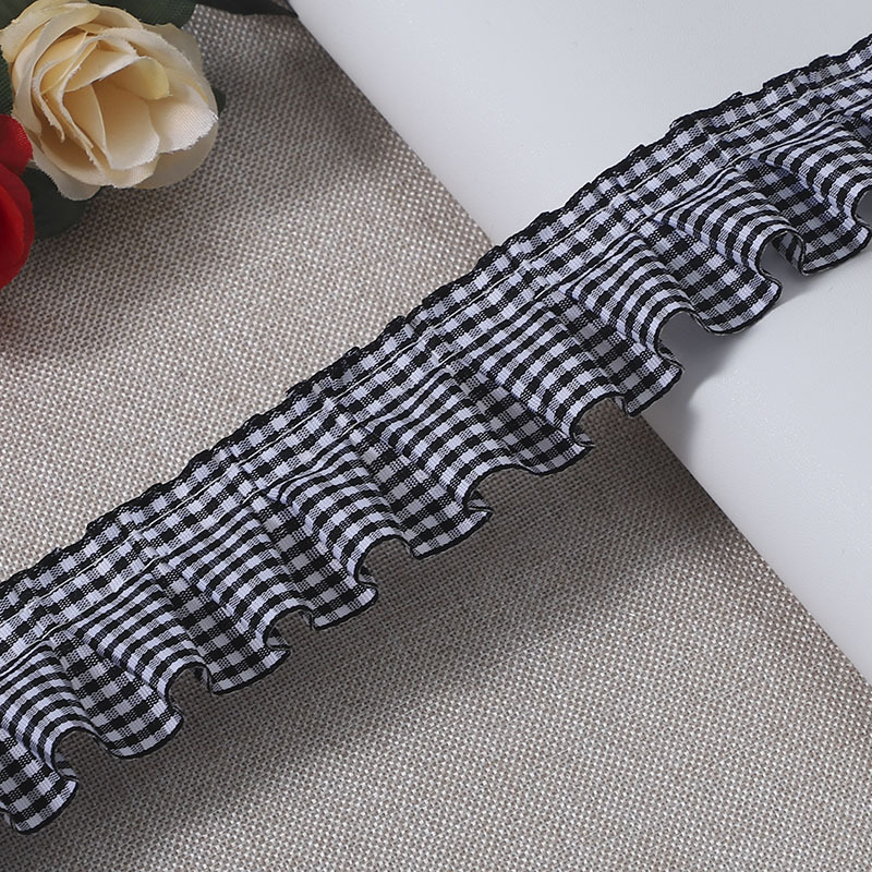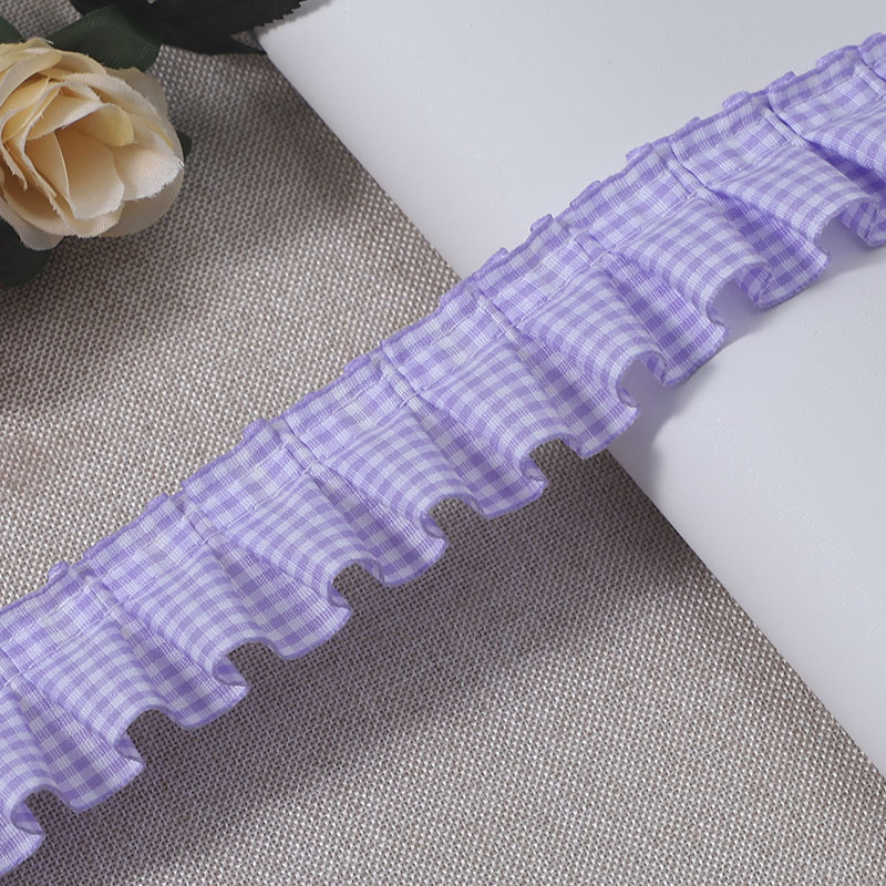 공장 재고 4cm 격자 무늬 주름 된 폴리 에스테르 할인 레이스 수제 DIY 의류 인형 스커트 연꽃 잎 액세서리