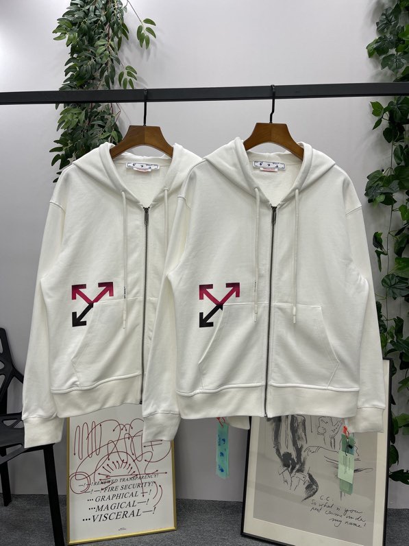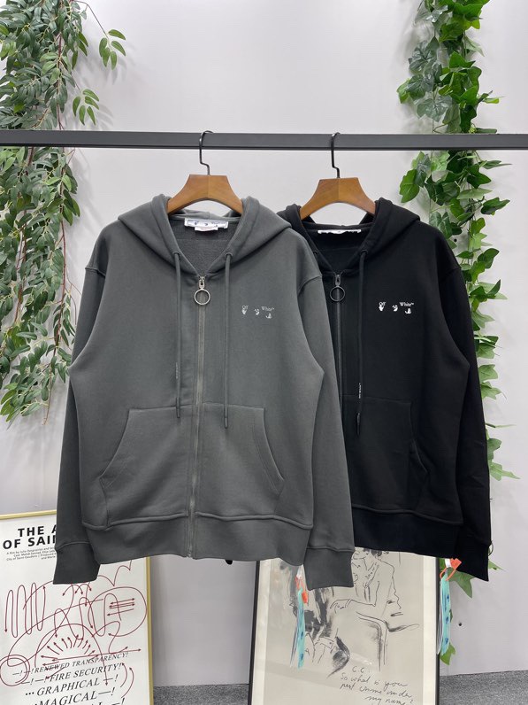 2025 봄 새로운 트렌디 제품 OFF 자수 패치 화살표 스타일 지퍼 카디건 후드 티셔츠 남성과 여성을위한스토어 가기