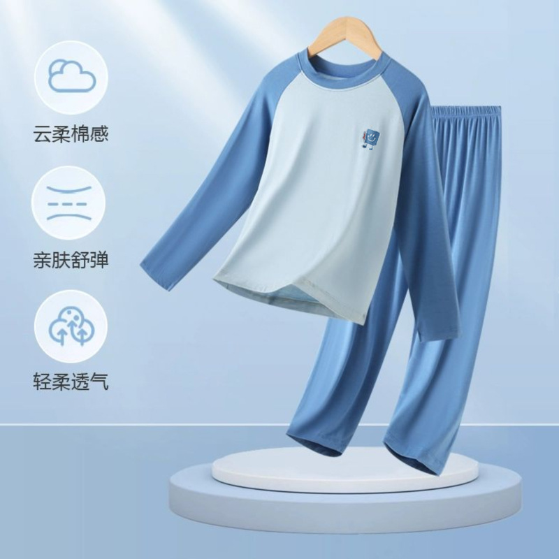 어린 이용 홈 옷 봄과 여름 모달 긴 소매 바지 세트 소년 소녀 숄더 쿨러 에어컨 옷스토어 가기