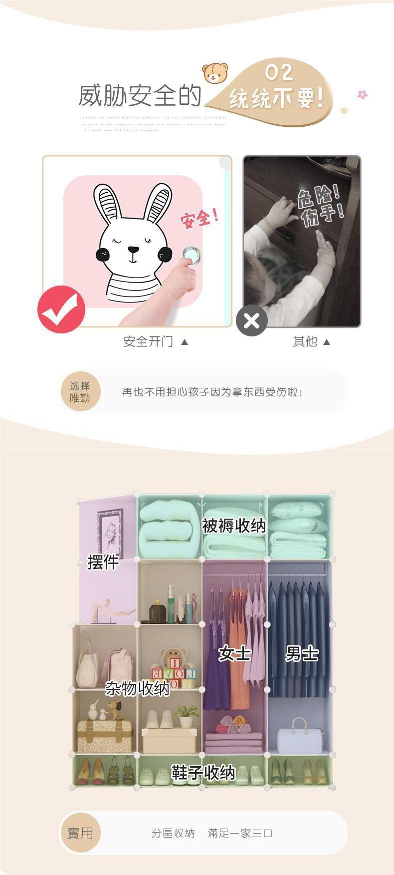 간단한 현대 경제적 인 직물 플라스틱 아기 무료 조합 다기능 어린이 간단한 옷장 보관 캐비닛
