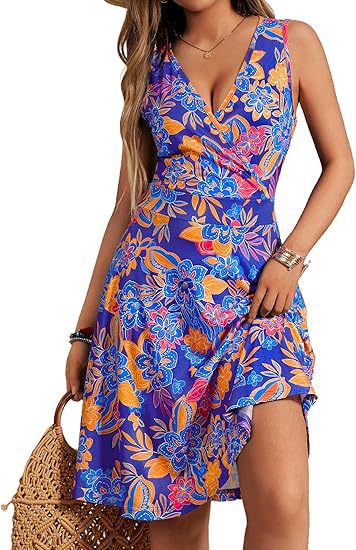 2025 봄과 여름 새로운 유럽과 미국 아마존 우아한 V-목 패션 인쇄 포켓 민소매 원피스스토어 가기