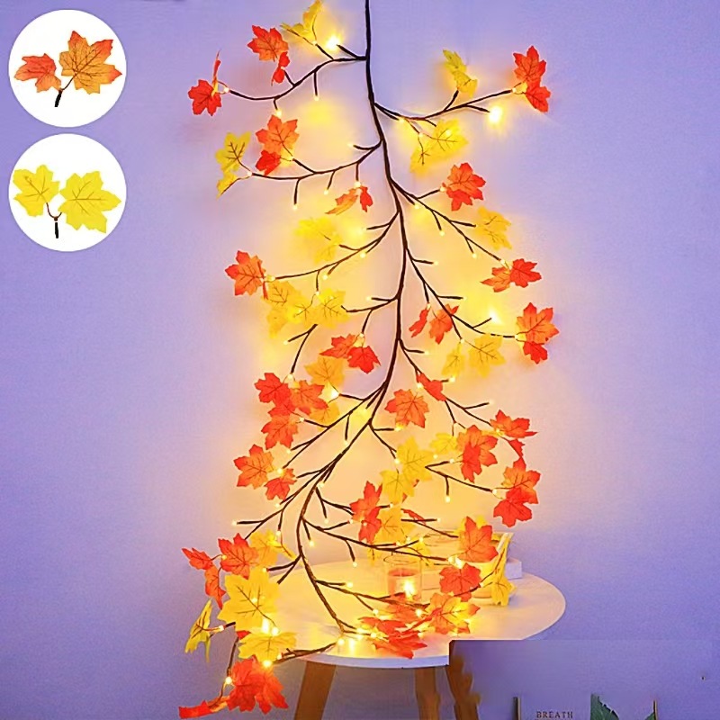 • 따뜻한 빛 단풍잎 등나무 램프